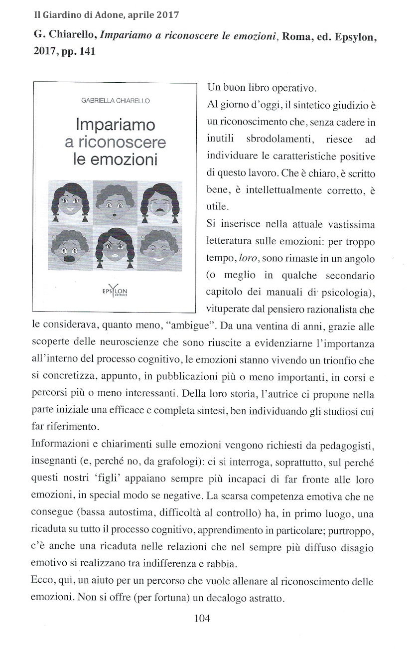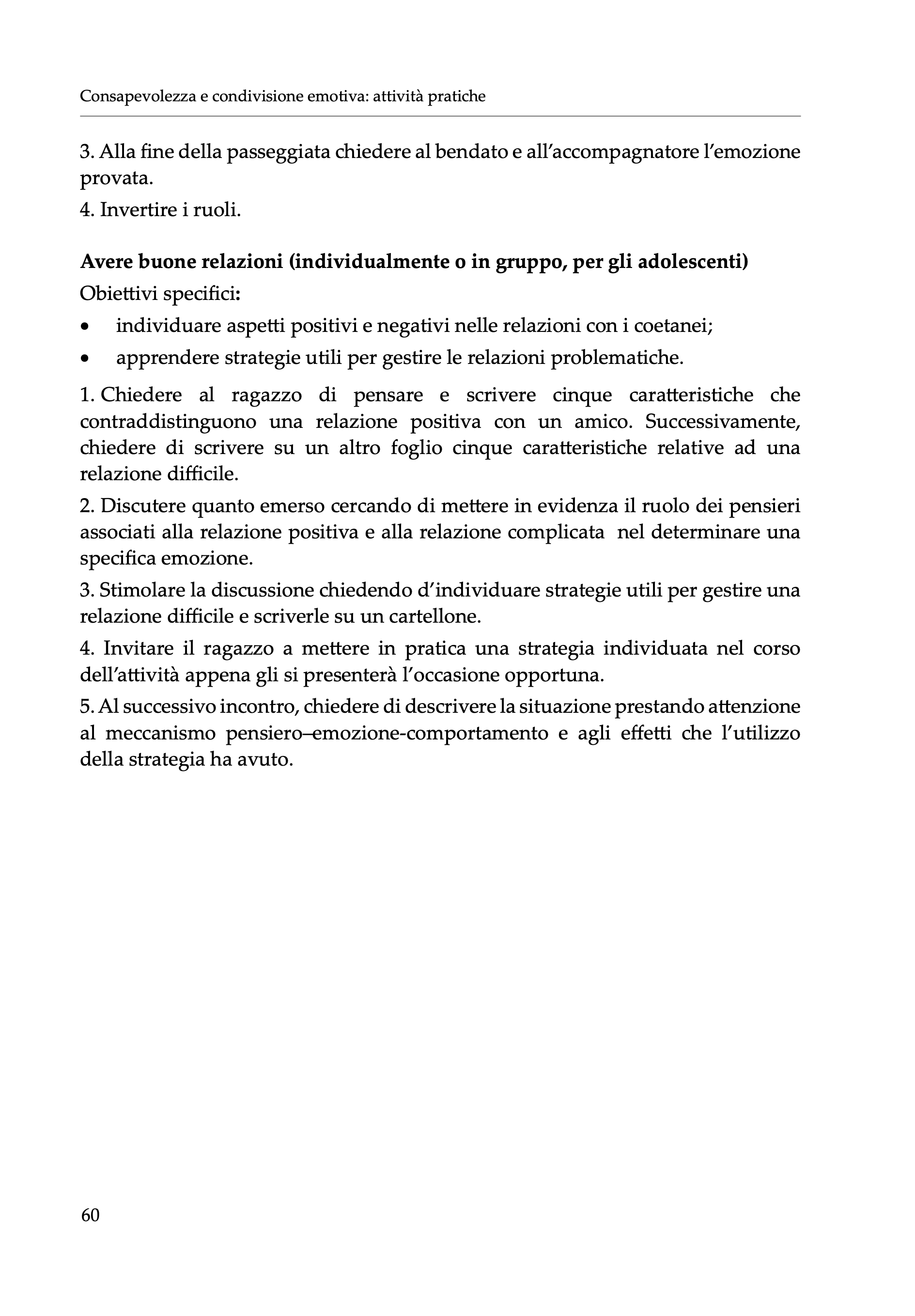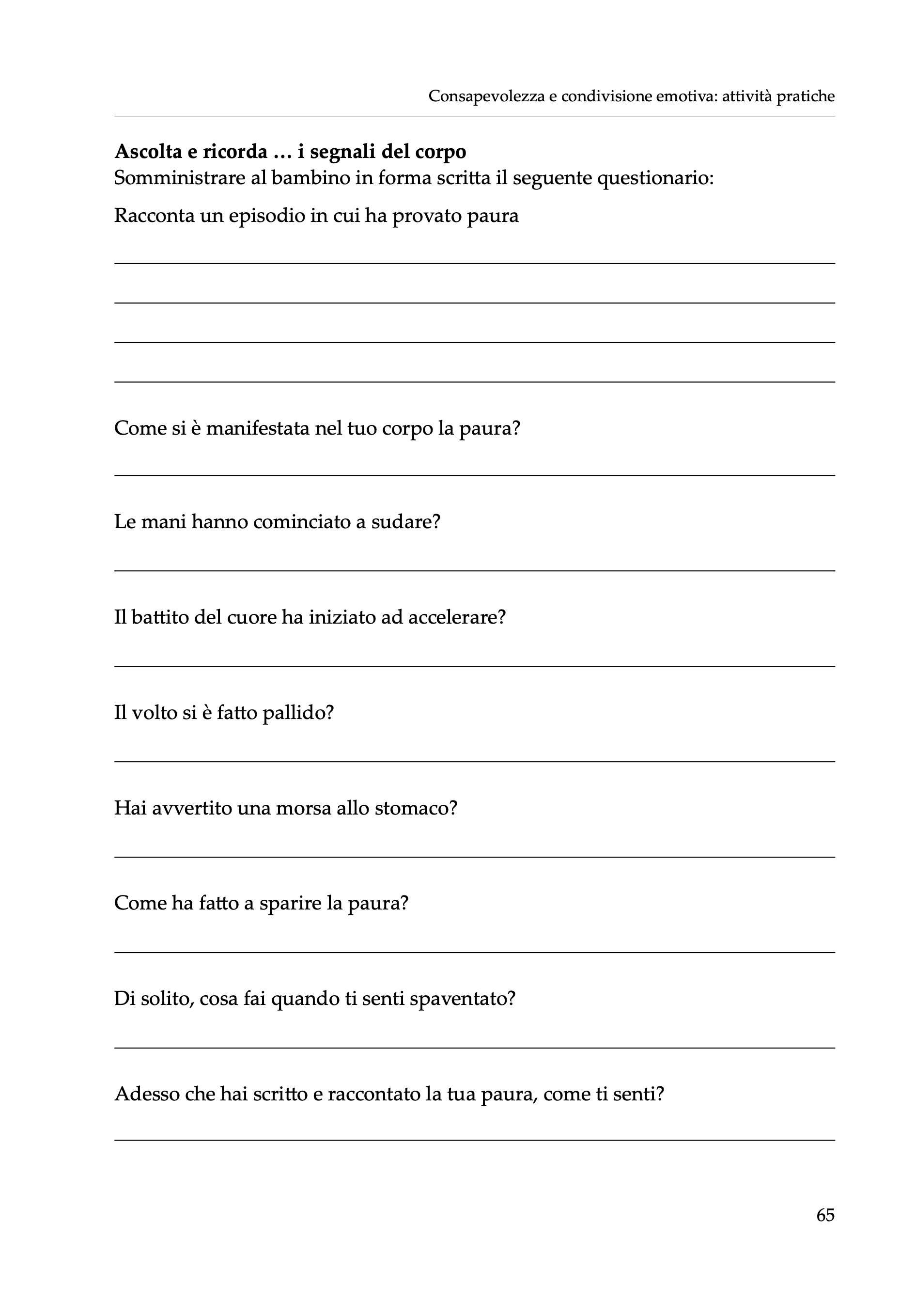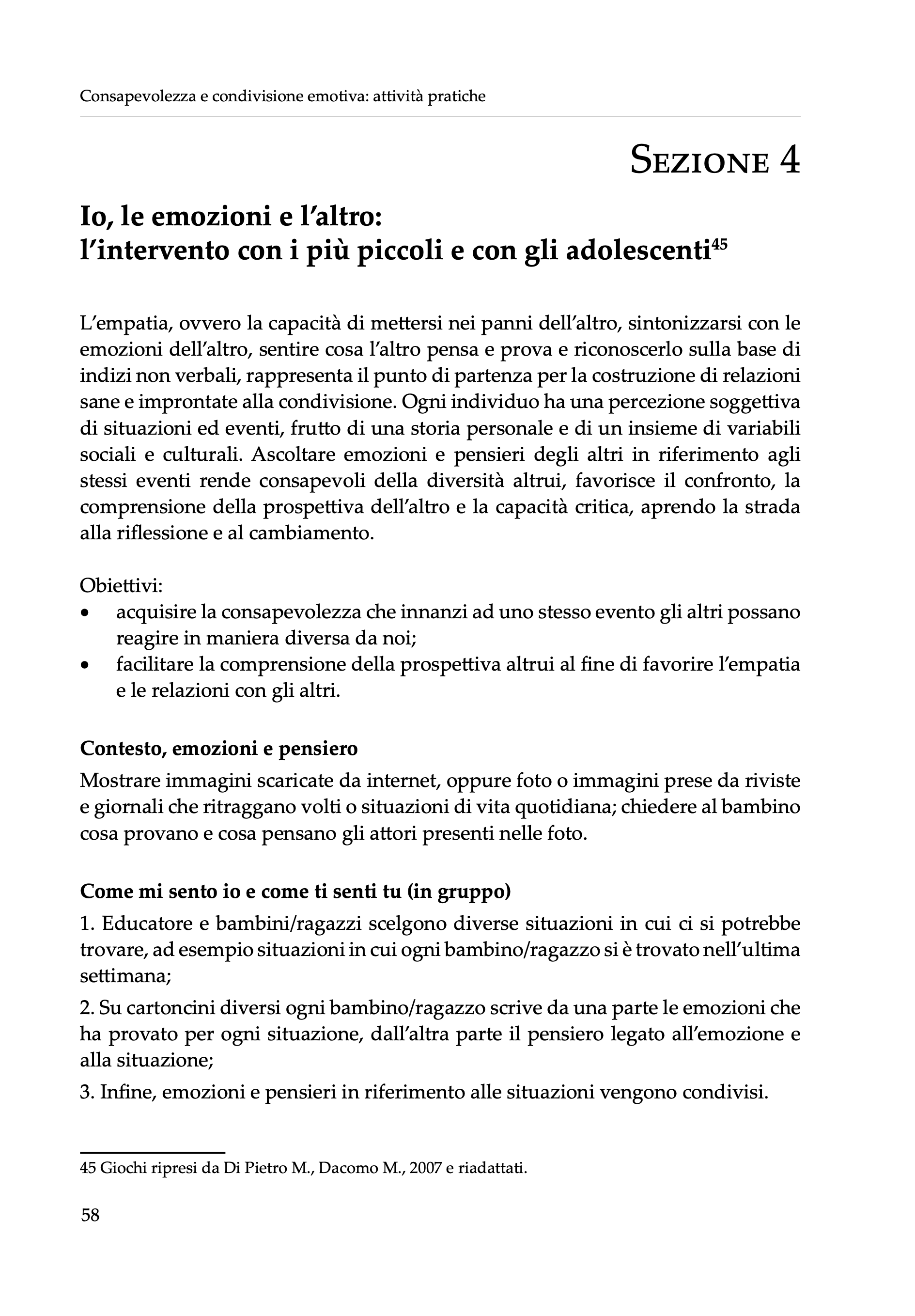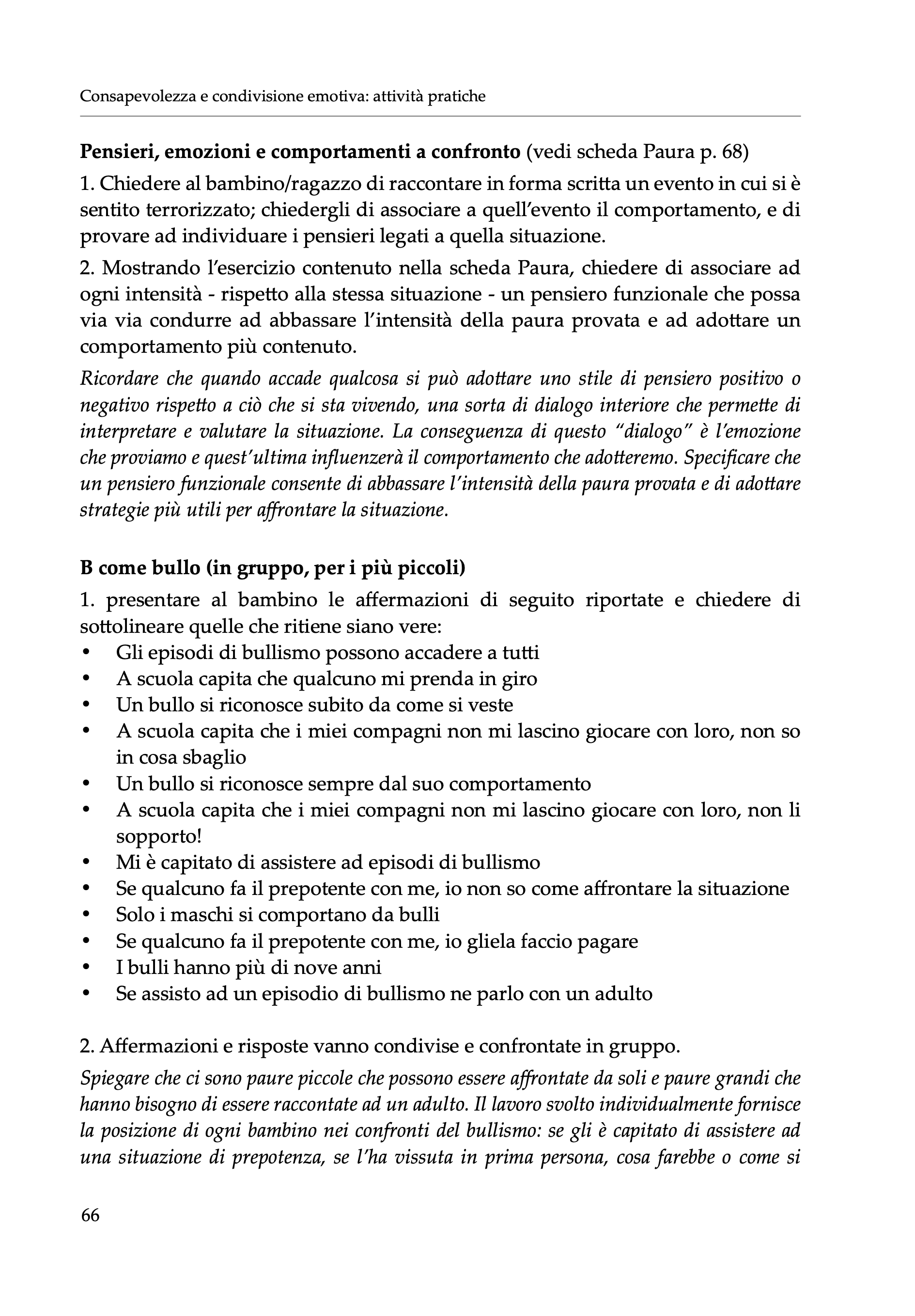 Il testo, scritto in modo pratico e vivace, prevede una prima parte teorica in cui vengono esposti i principali studi sulle emozioni, per passare poi a una parte pratica in cui - attraverso la spiegazione di attività varie centrate sulle emozioni (questionari, lavori manuali, storie e giochi di simulazione che l’adulto può concretamente utilizzare durante gli incontri) - i bambini o gli adolescenti vengono guidati verso la consapevolezza, l’accettazione e la regolazione delle proprie emozioni e quindi verso la comprensione delle emozioni degli altri.