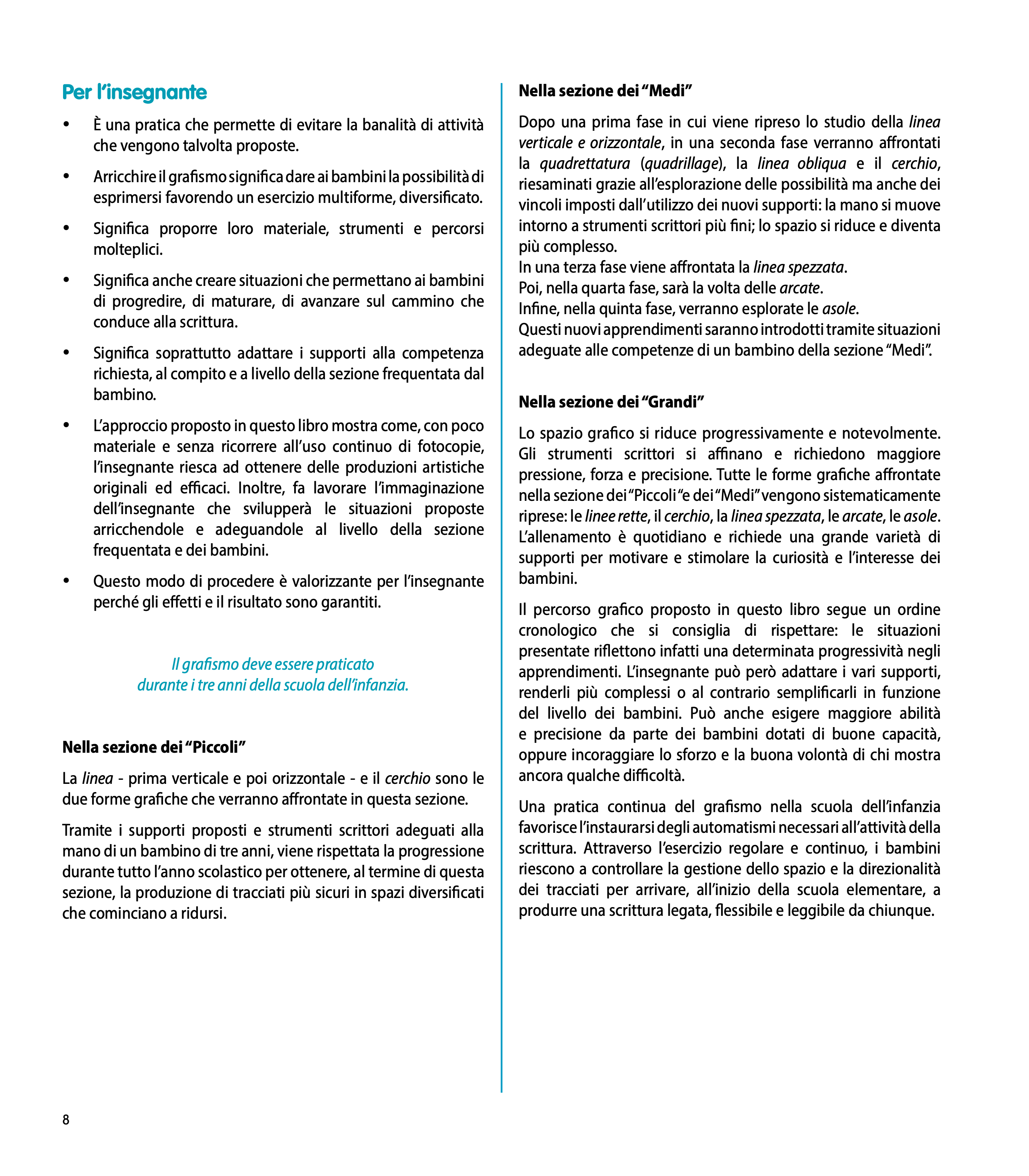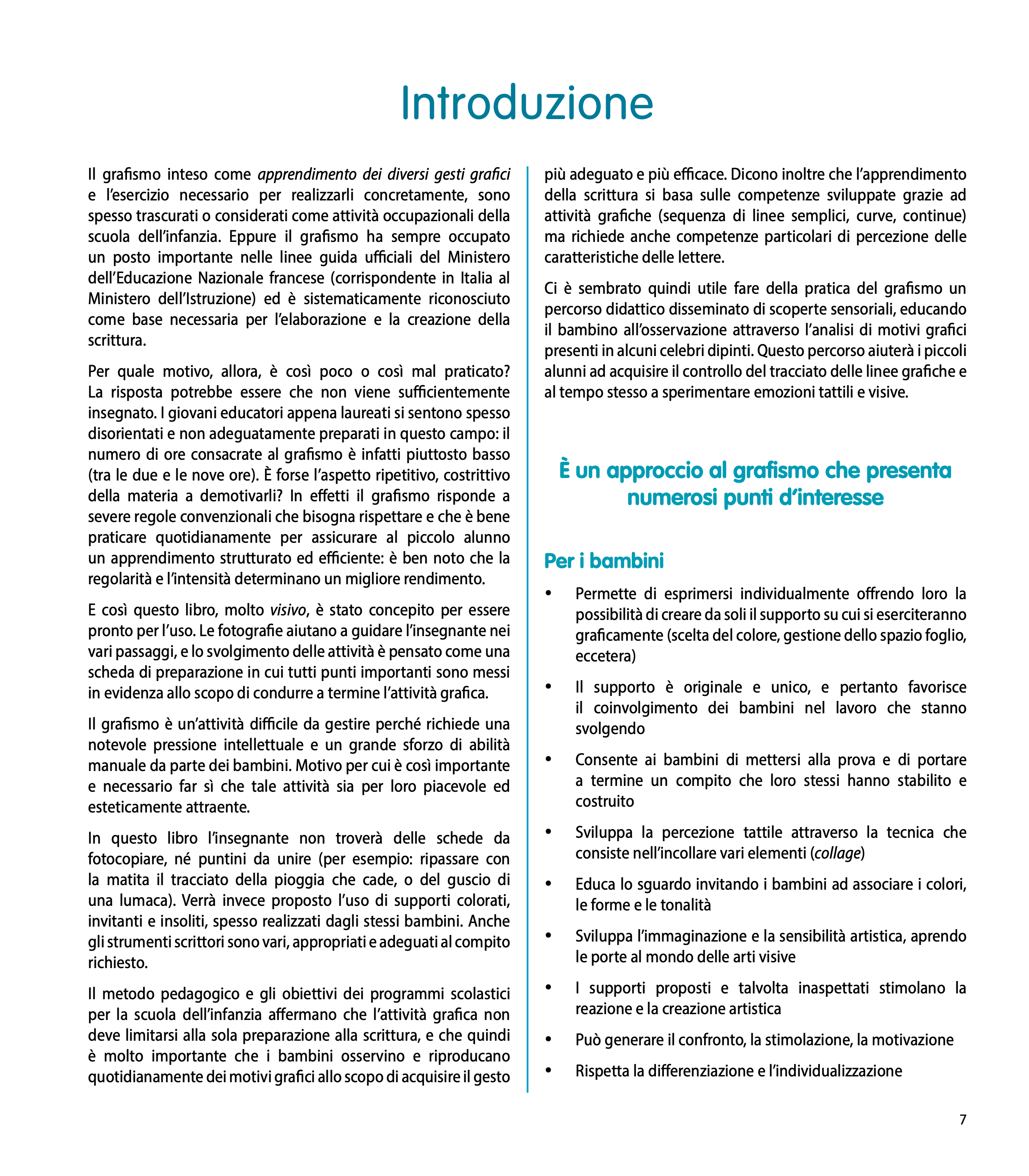 Le attività grafiche aiutano il bambino piccolo a costruire abilità percettive e motorie, a sviluppare capacità di analisi e di confronto, a sollecitare gli automatismi utili per acquisire la corretta direzionalità dei tracciati e per affinare la capacità di analisi visiva.