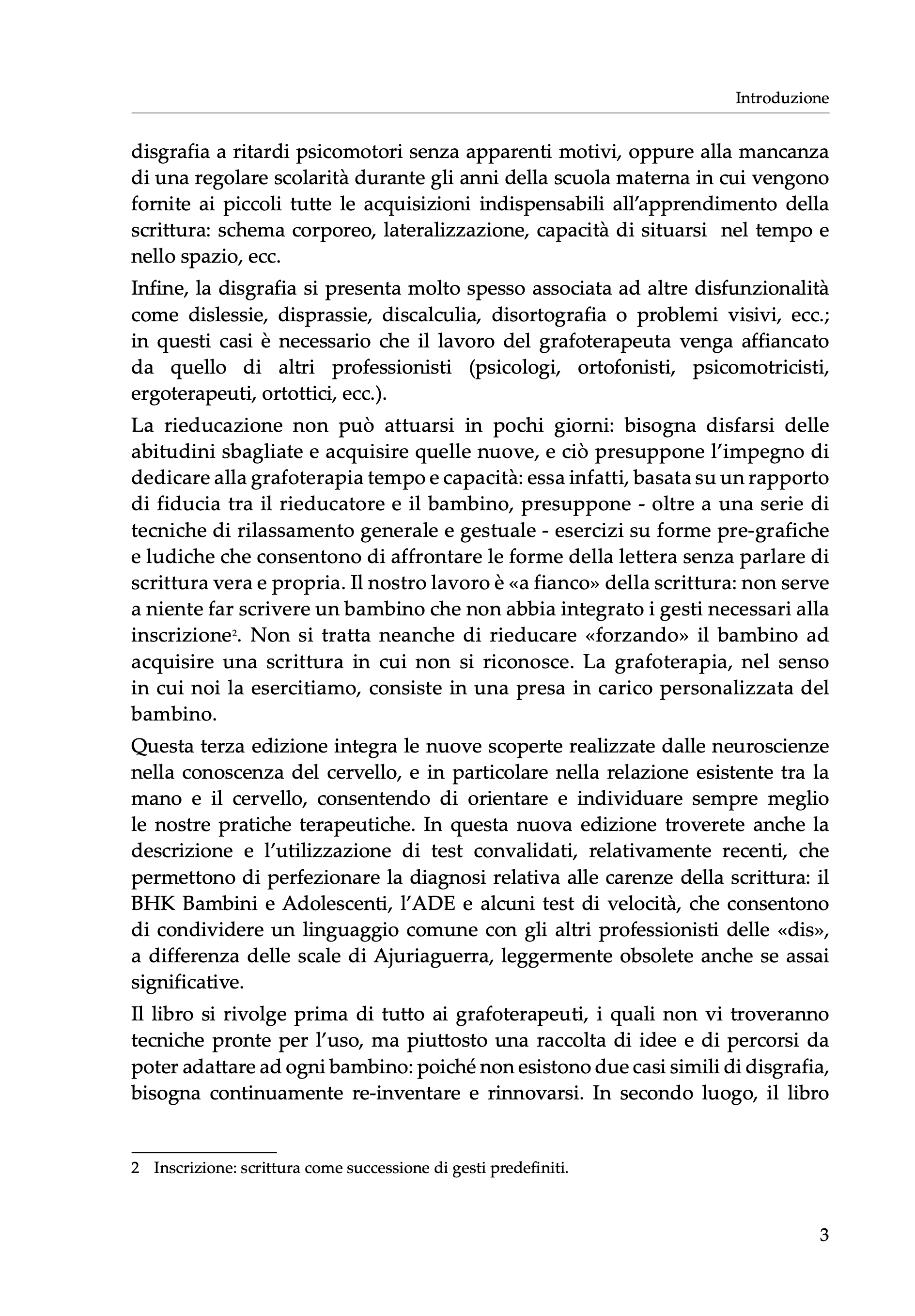 Per quest’ultima edizione largamente arricchita e ampliata, le autrici, attente ai recenti sviluppi delle neuroscienze riguardo alle interazioni tra cervello e mano, hanno focalizzato la propria revisione sulle attuali tecniche diagnostiche relative alle carenze della scrittura e sulla presentazione di vari test convalidati a cui gli specialisti della scrittura infantile possono fare ricorso: BHK Bambini e Adolescenti, ADE, ecc.