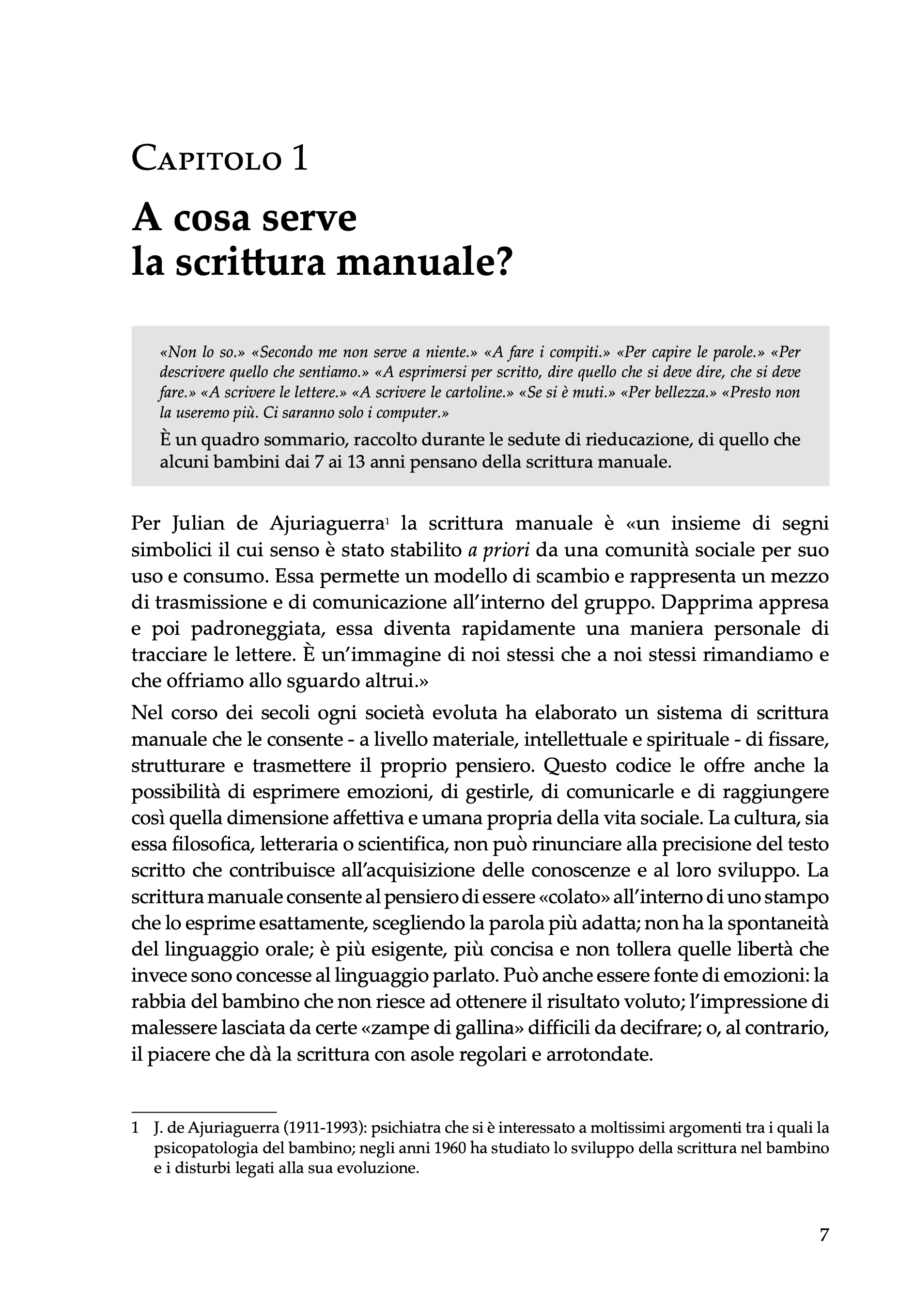 Frutto di numerosi anni di riflessione e di pratica nel campo della rieducazione, questo libro si inserisce nel solco di un lavoro d’équipe centrato sul trattamento delle disgrafie, esaminando in dettaglio la nascita del gesto grafico, le condizioni in cui esso si evolve e le possibilità di recupero in caso di problemi.