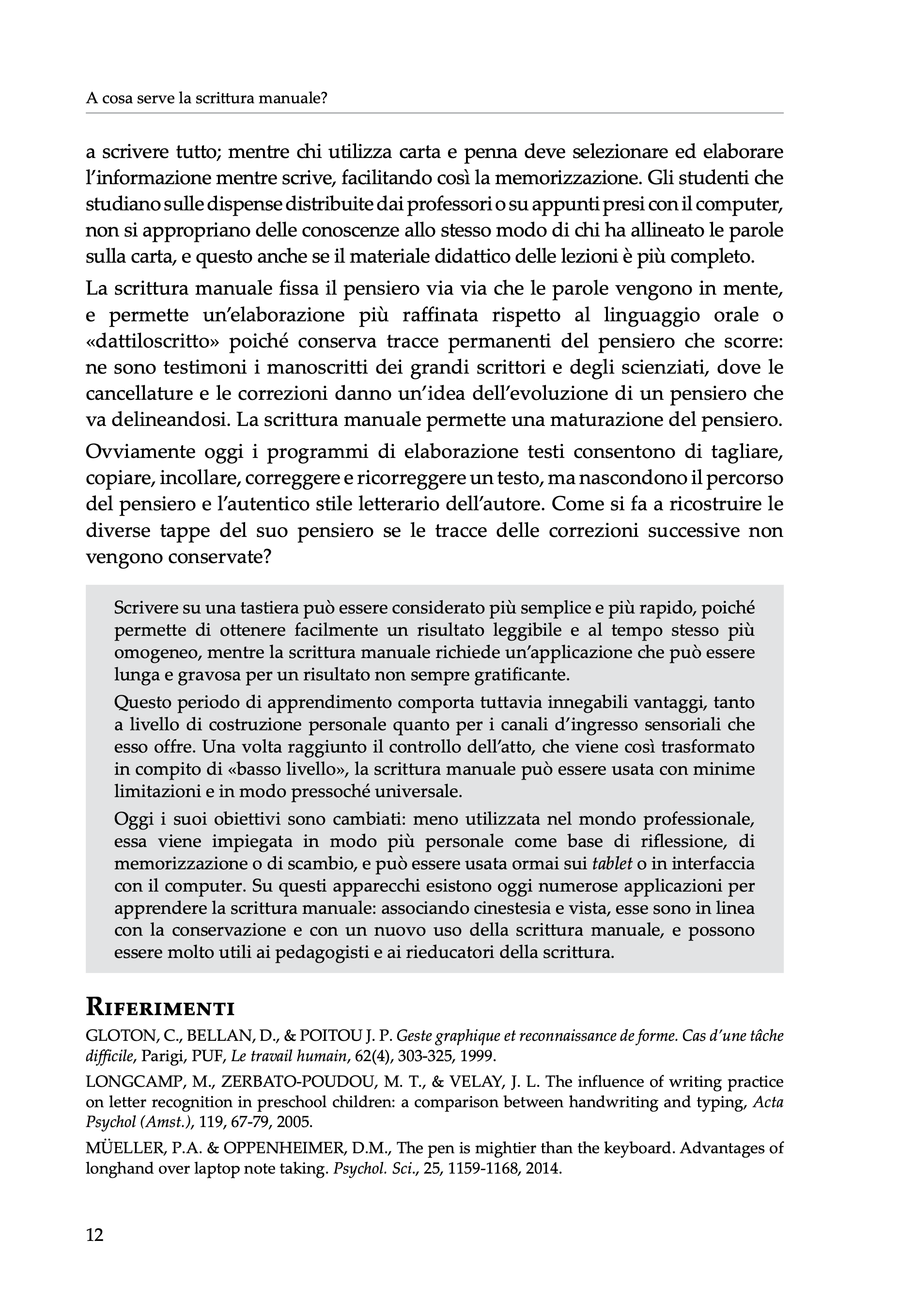 E’ un manuale didattico che apre nuovi spunti di riflessione a tutti coloro che si interessano della scrittura infantile e adolescenziale: rieducatori, naturalmente, ma anche insegnanti, pedagoghi, ortofonisti, psicomotricisti, ergoterapeuti, grafologi, ecc.