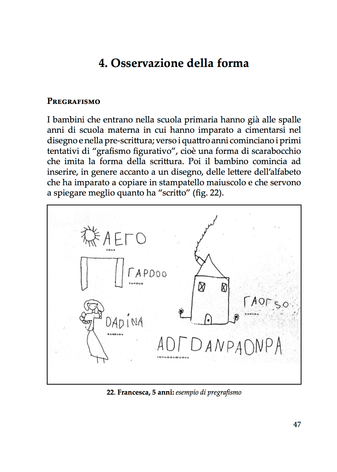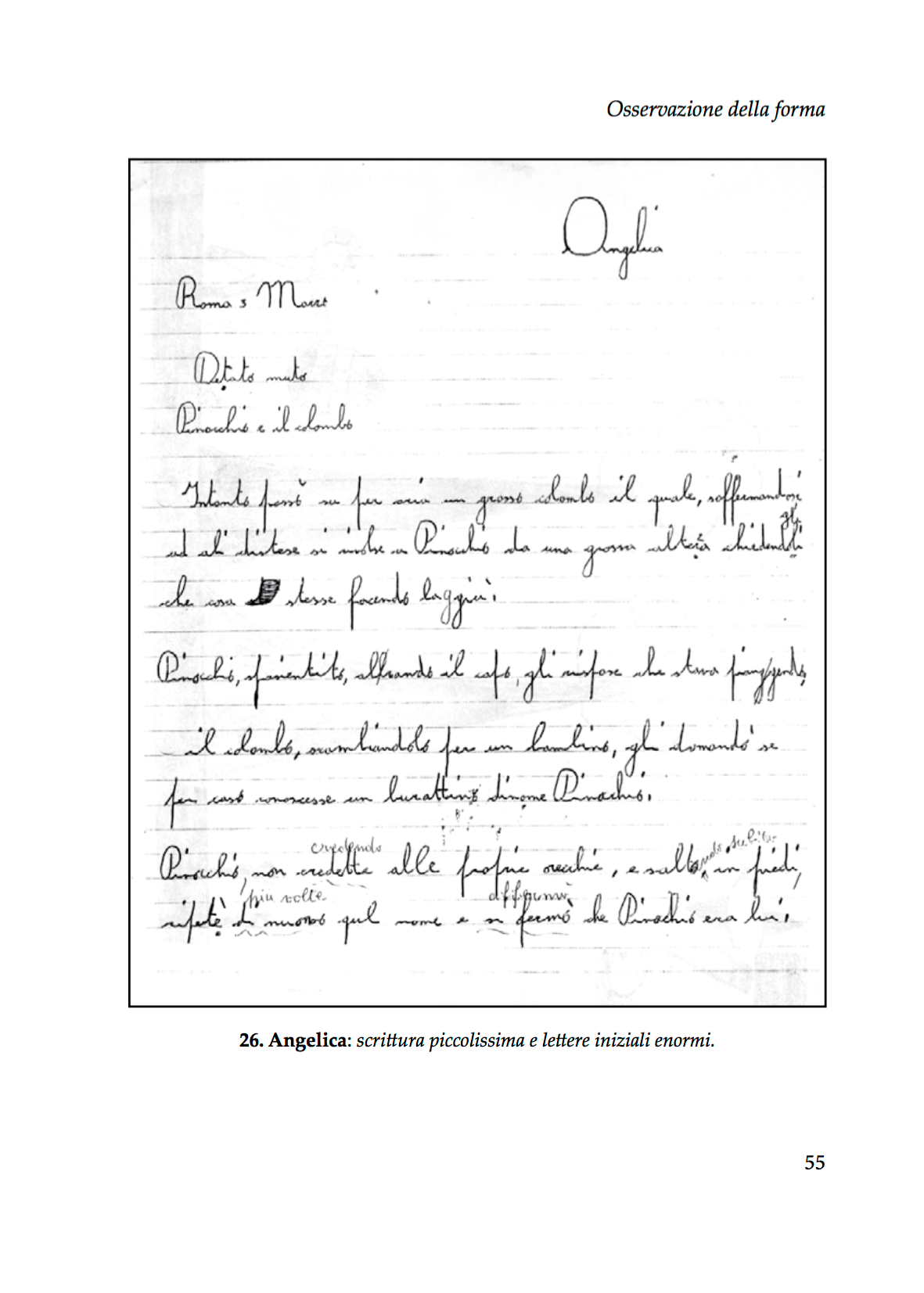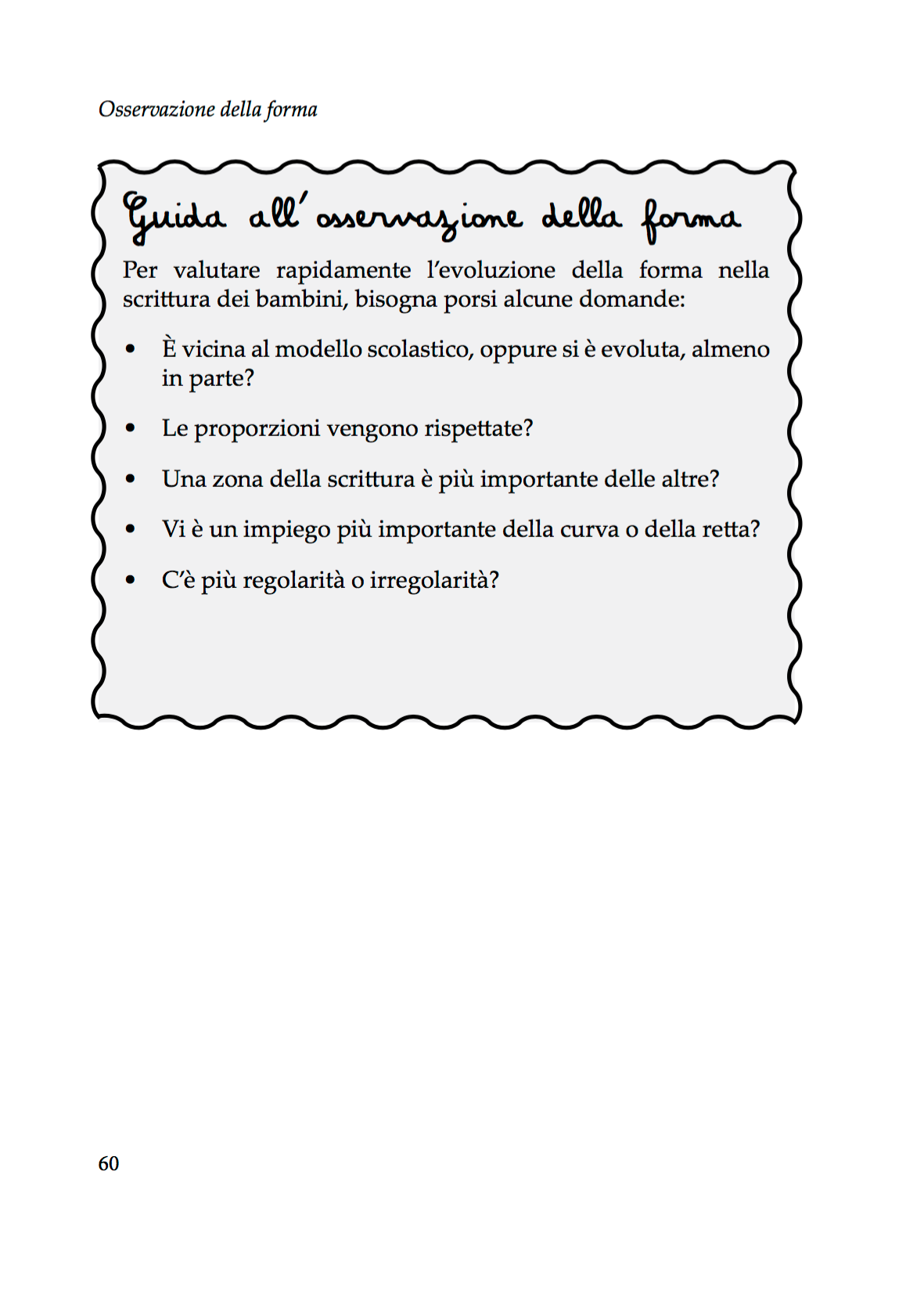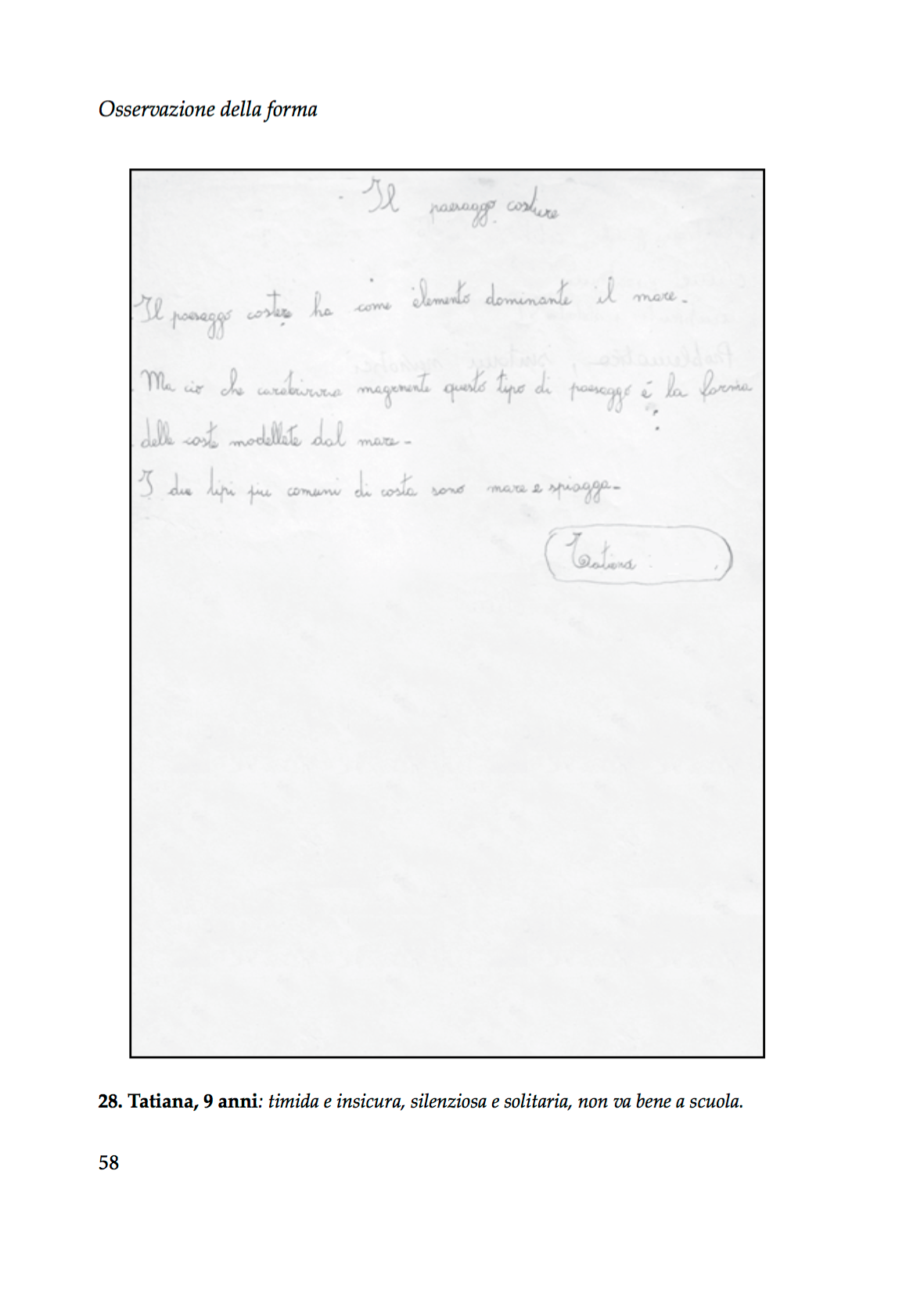 Il libro affronta il tema dell’importanza della scrittura manuale nella scuola primaria, osservando nei piccoli allievi il modo di occupare lo spazio, lo svolgersi e la qualità del tracciato, l’elaborazione della forma e lo sviluppo della motricità. Importanti i “segnali di allarme” reperibili nella scrittura dei bambini di oggi, i quali hanno grande difficoltà ad accettare la disciplina e poca capacità di concentrazione, spesso in competizione con se stessi e gli altri.