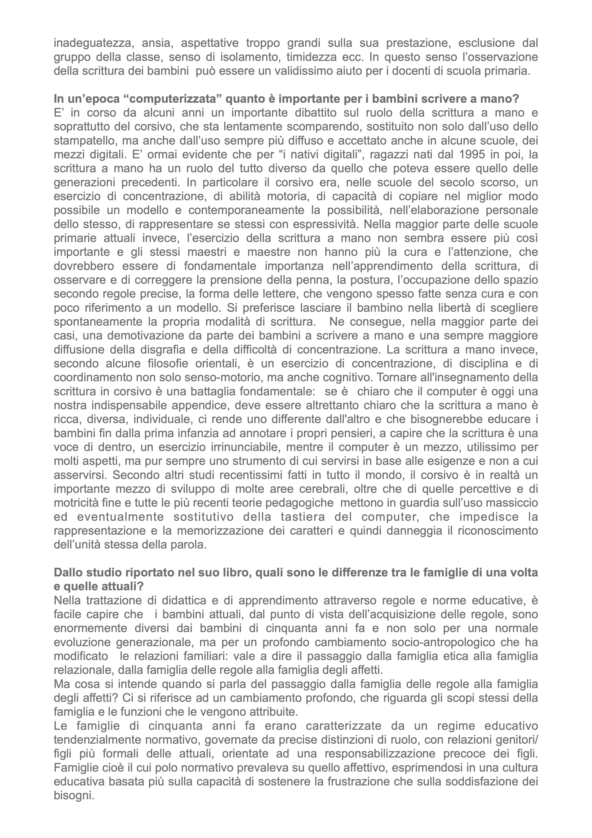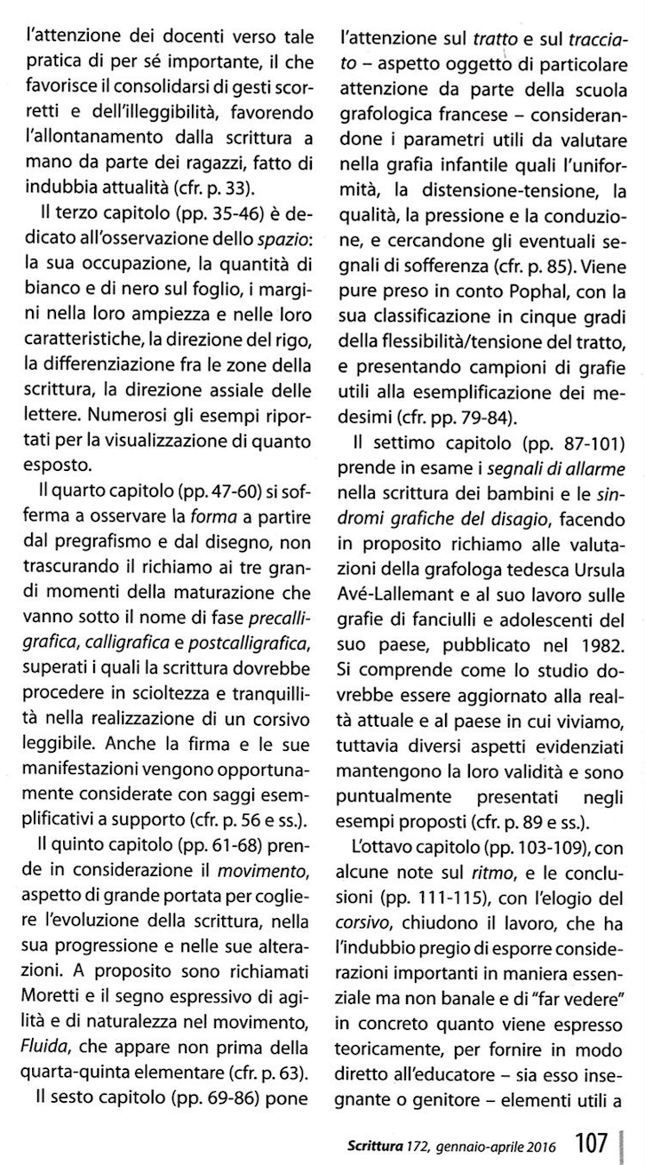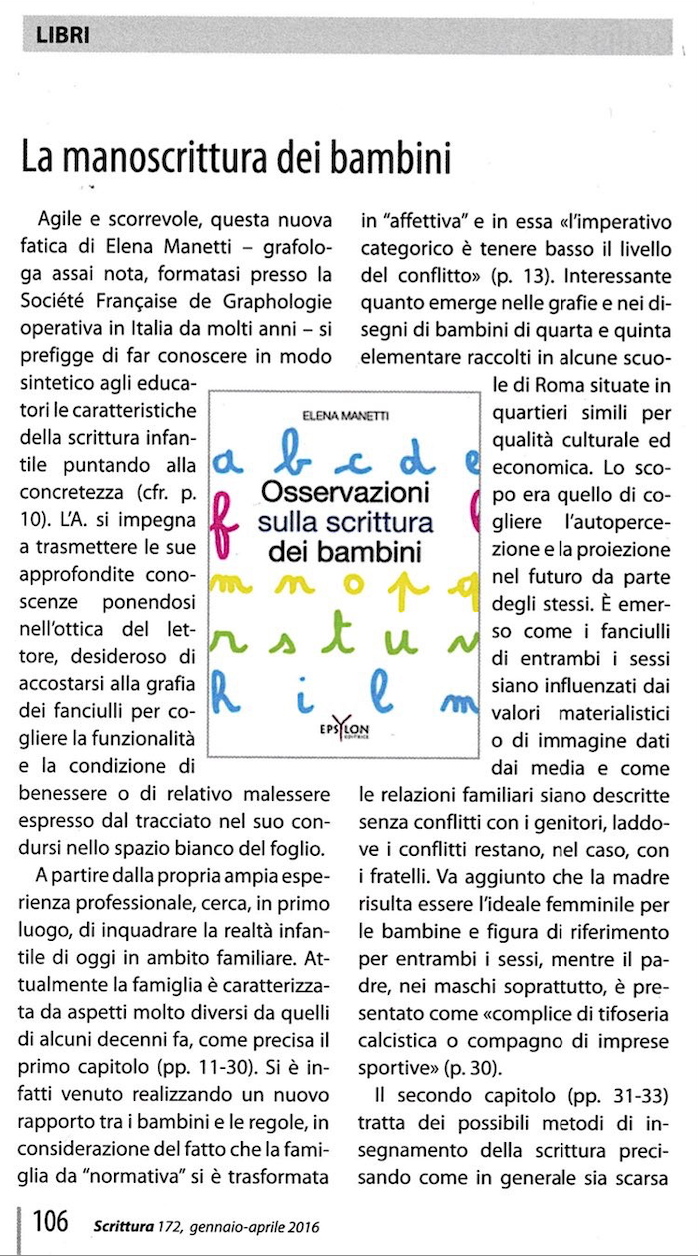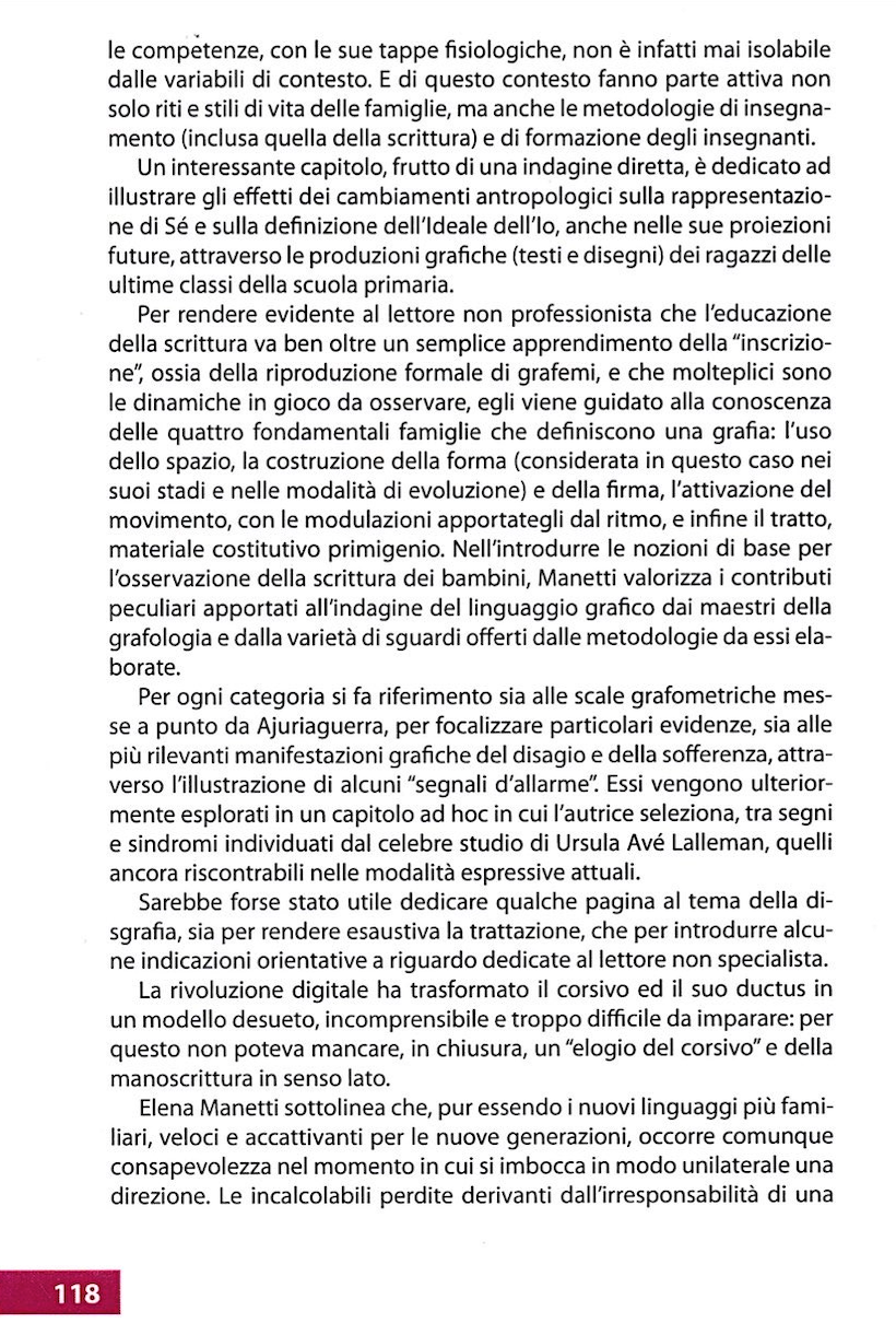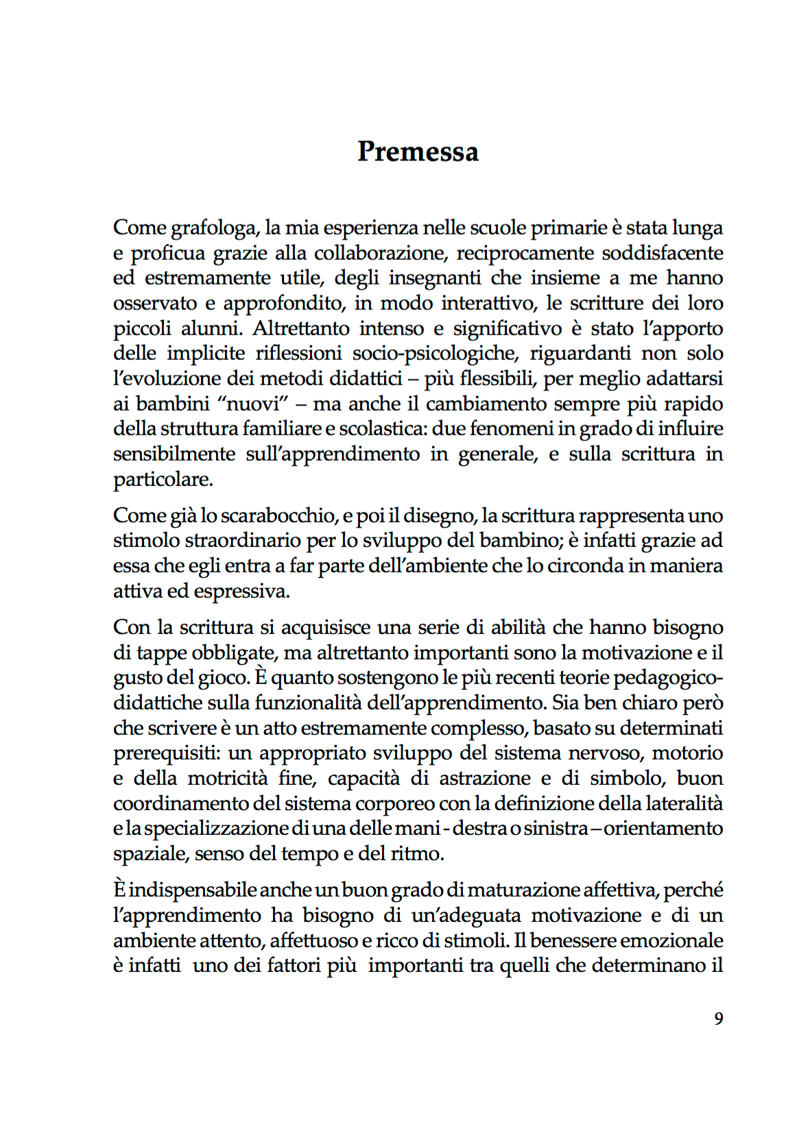 Un libro particolarmente utile e interessante per chi si dedica ai problemi e alle risorse dell’età dello sviluppo, non solo quindi per i grafologi ma rivolto a tutti coloro che si occupano di bambini, soprattutto a maestre e maestri della scuola primaria.