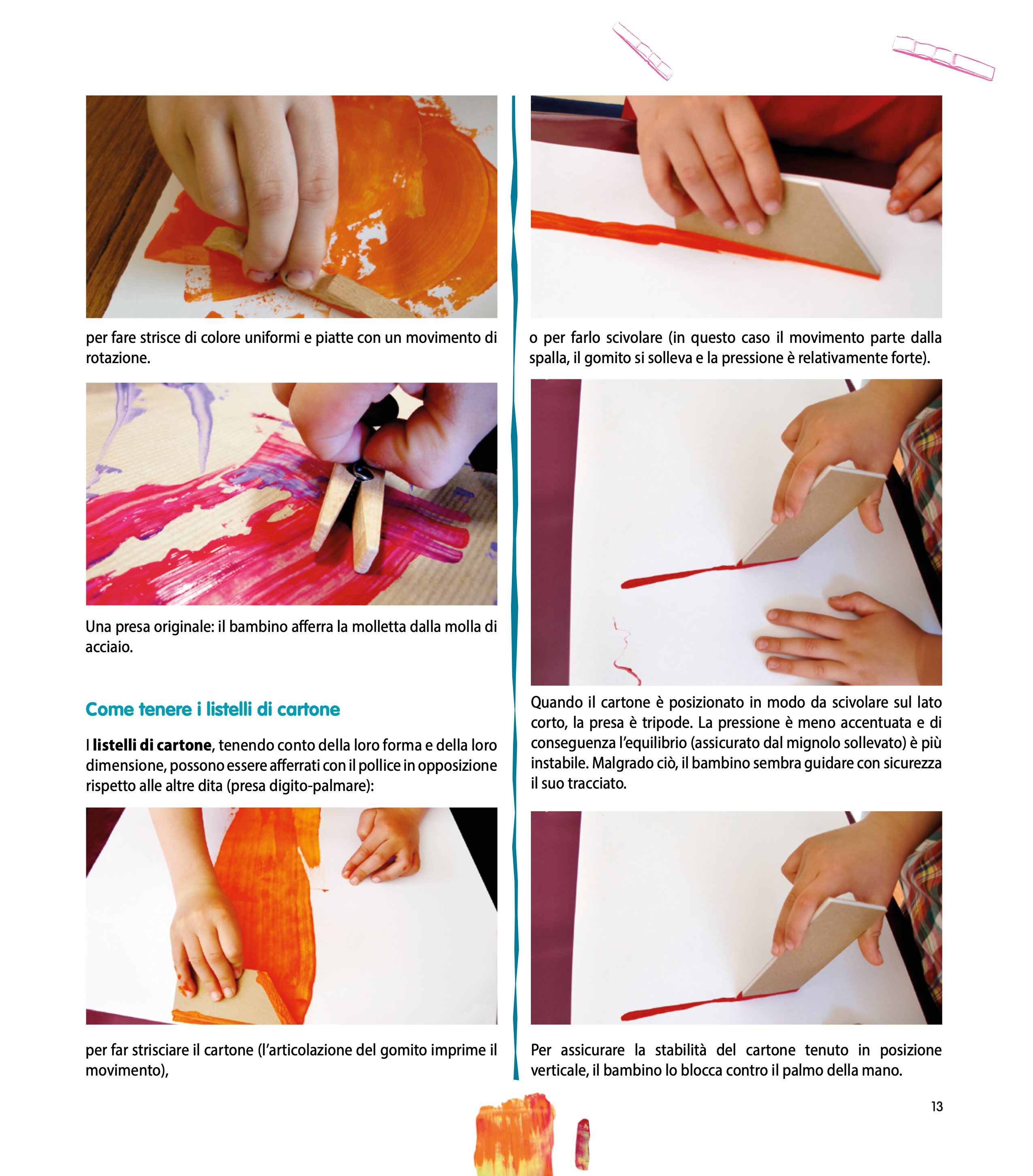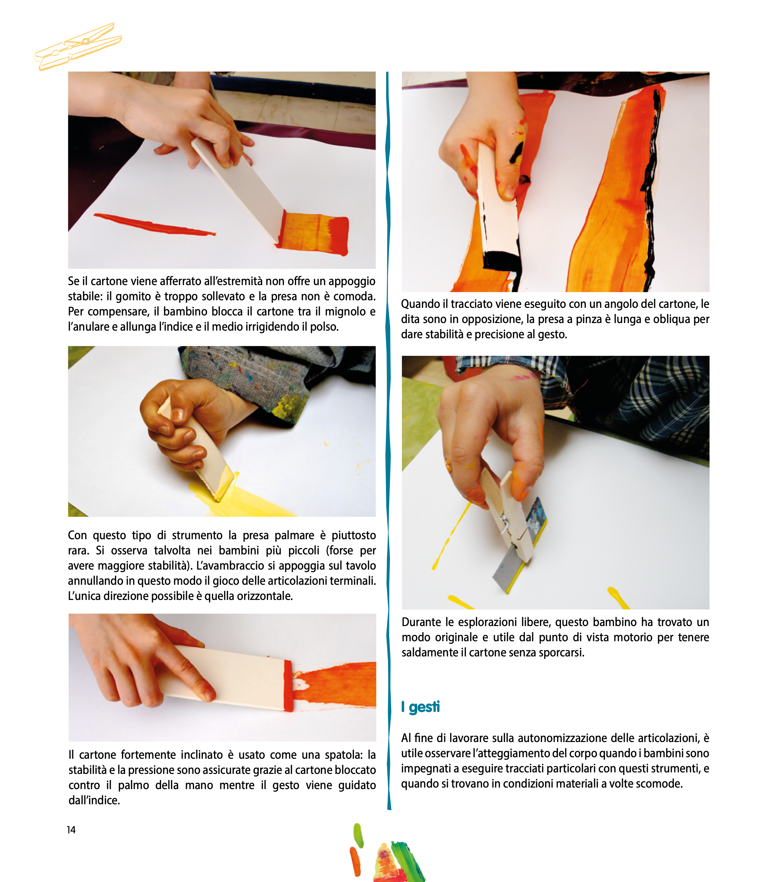 Dopo un’introduzione su come vanno impiegati gli strumenti, le attività sono organizzate in base al tipo di tracciati da realizzare: linee lunghe, corte, in movimento, la rotazione, l’organizzazione dei tracciati, la rimozione della pittura e le creazioni libere.