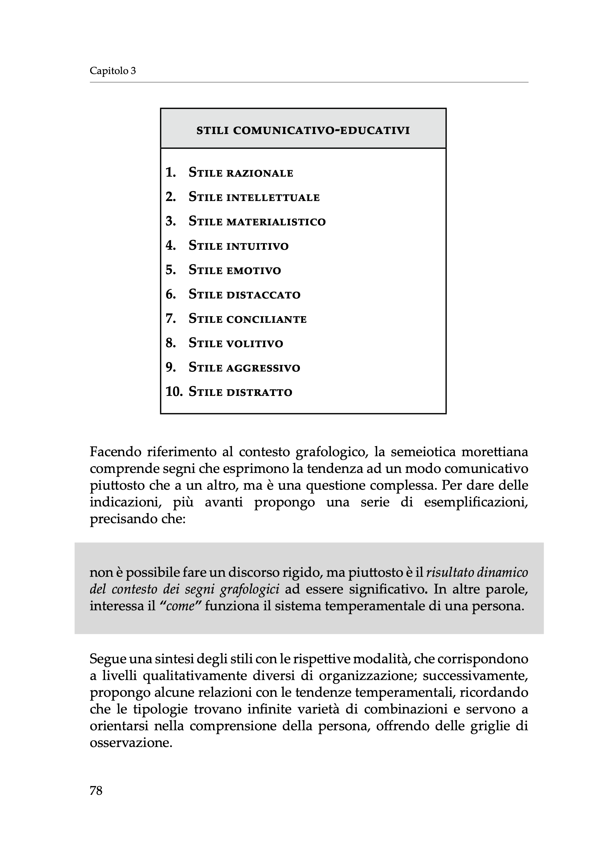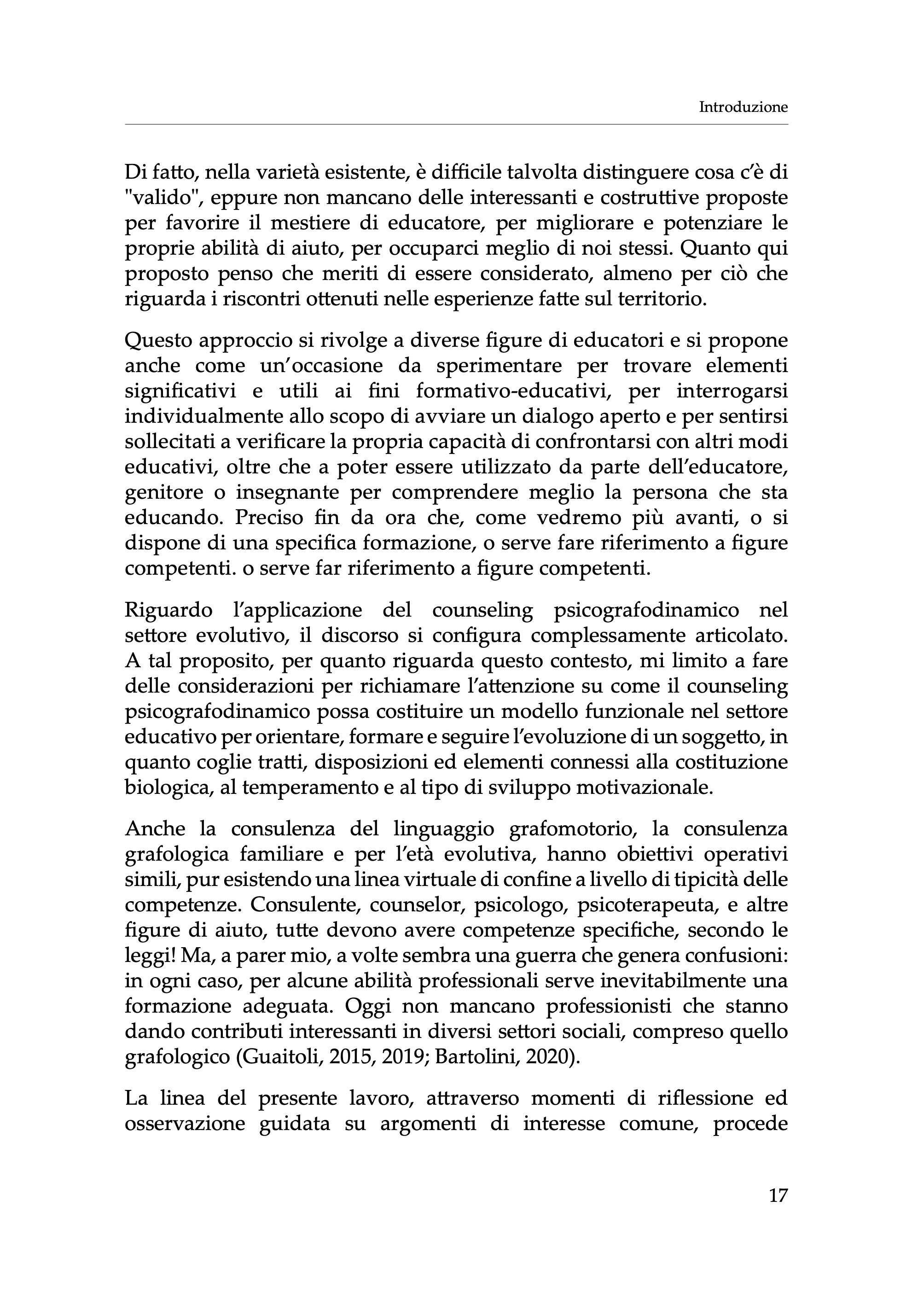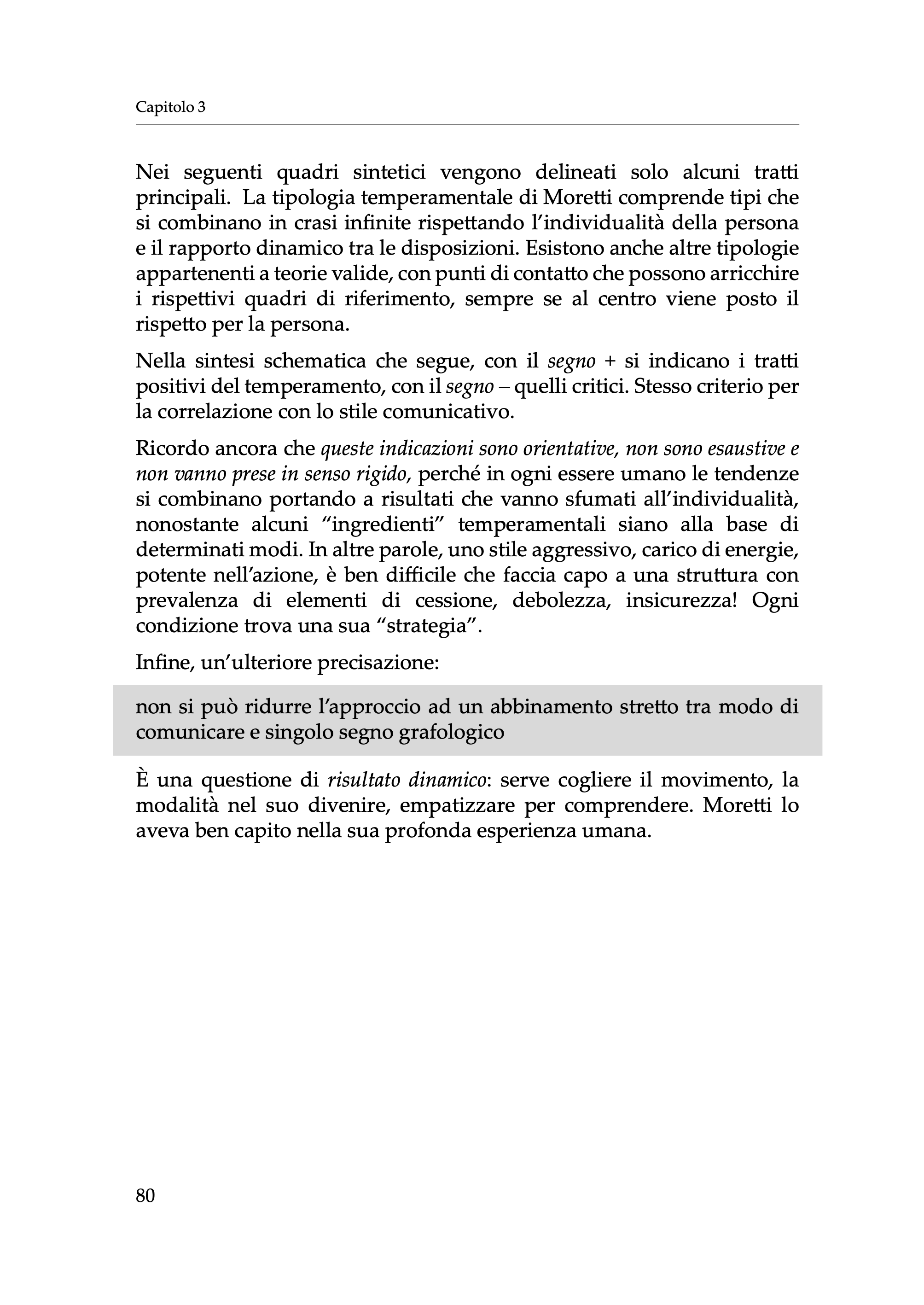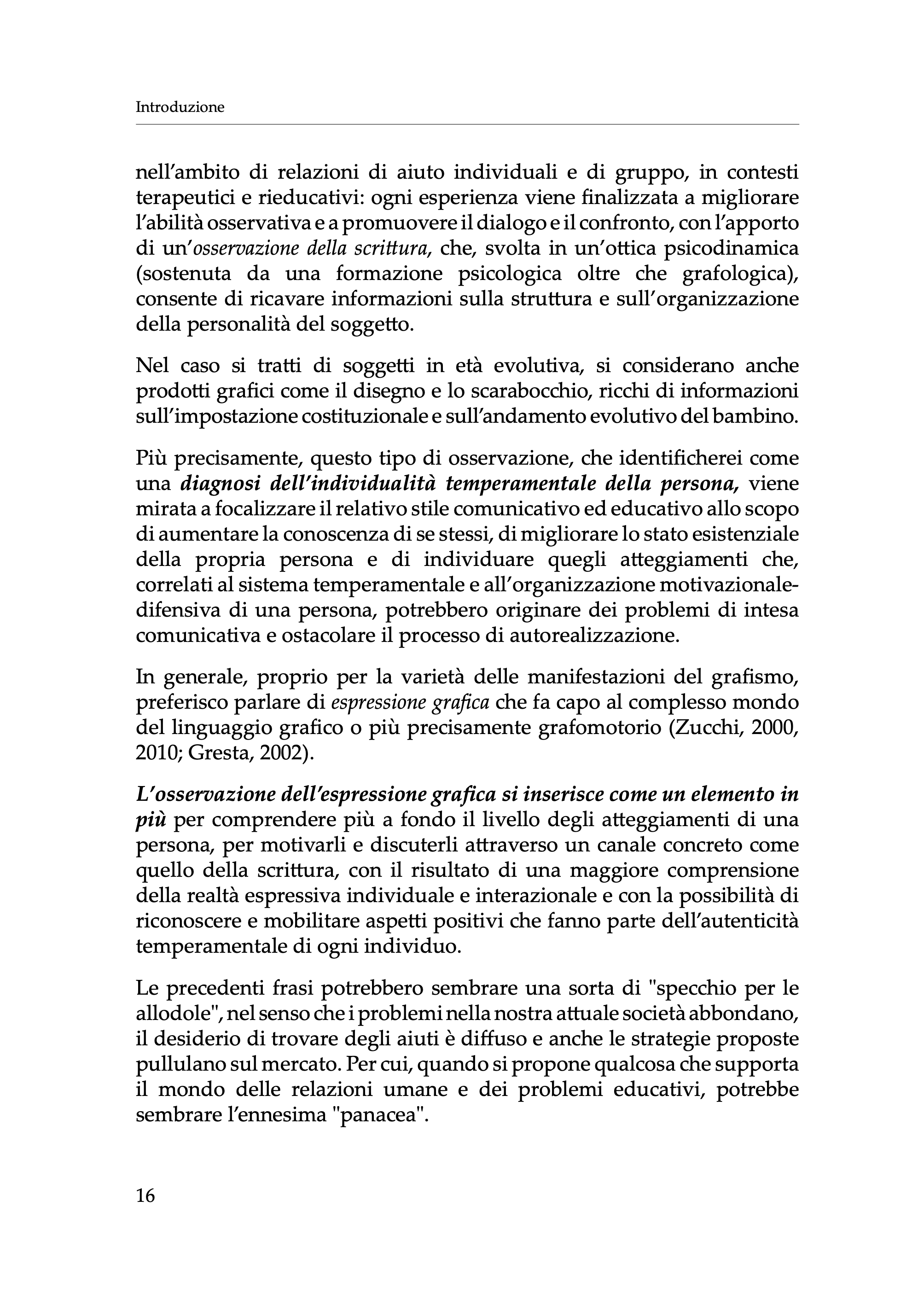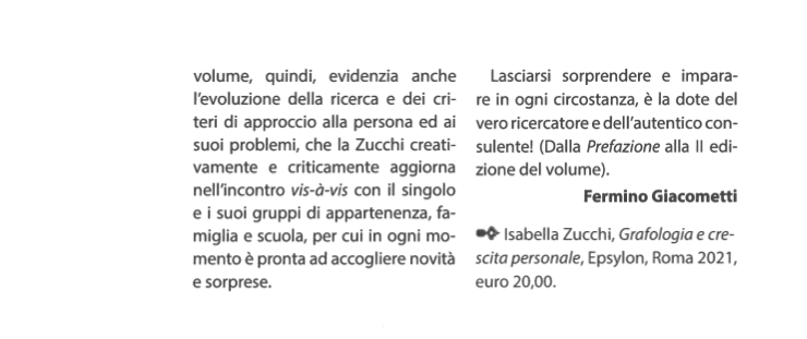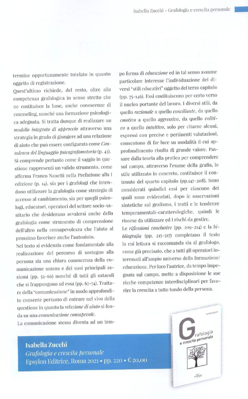 In particolare, come afferma lo psicologo A. Conte nella sua prefazione, il libro cerca di “orientare lo studio della disciplina grafologica verso un’organizzazione didattico-formativa che punti non solo allo studio tecnico e scientifico della traccia grafica, ma anche e soprattutto all’uso di essa nello studio della personalità, nell’ambito degli interventi educativi con la famiglia e la scuola e nell’impostazione di programmi a favore della prevenzione del disagio evolutivo”.