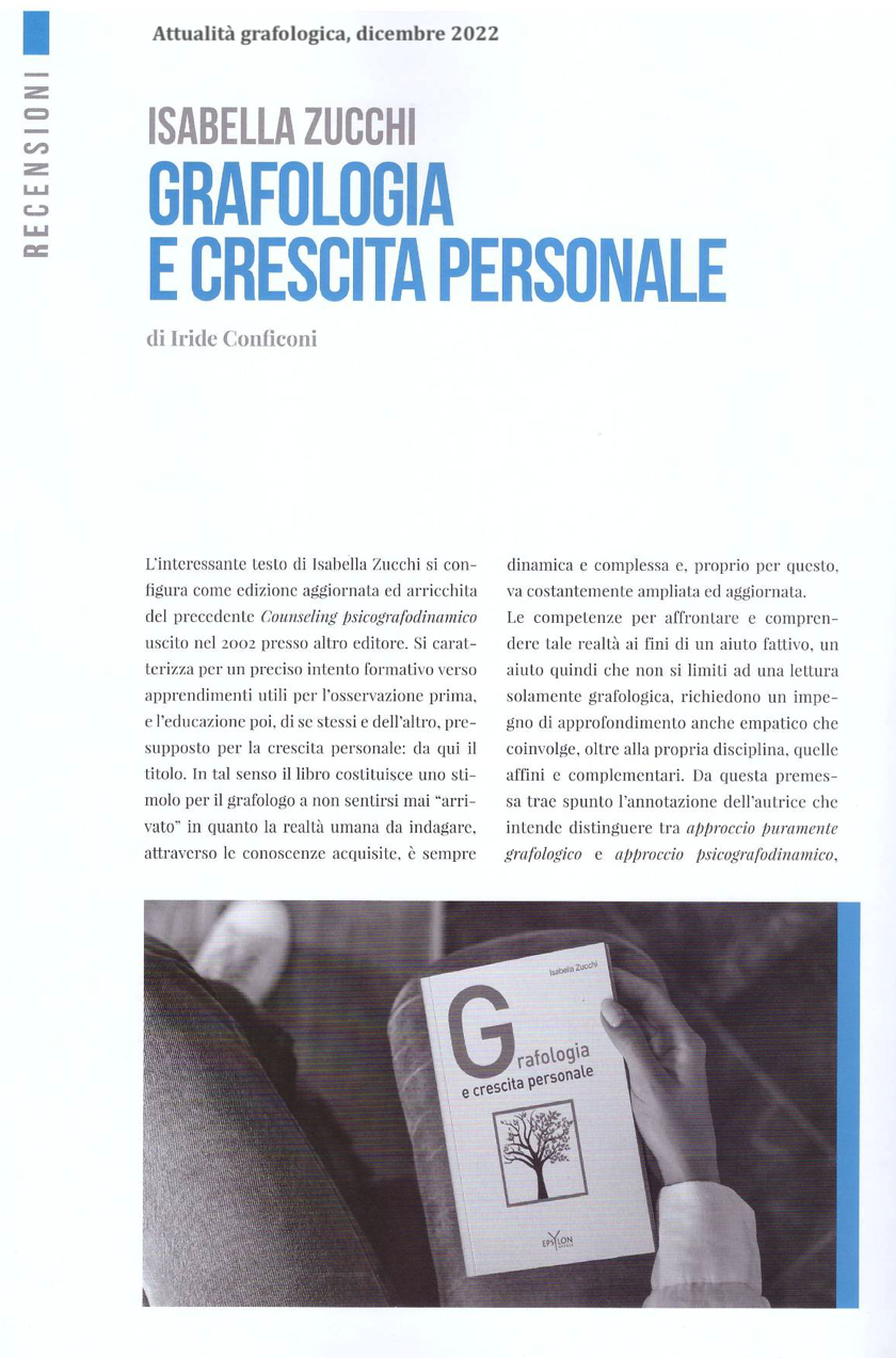 È la nuova edizione, ampiamente aggiornata e arricchita, di Counseling psicografodinamico® pubblicato nel 2002 nei Quaderni del laboratorio del linguaggio grafico: un itinerario formativo della persona verso apprendimenti utili per l’osservazione e l’educazione di se stessi e dell’altro, ai fini di una crescita personale attraverso riflessioni e osservazioni guidate in una prospettiva psicologica e grafologica.