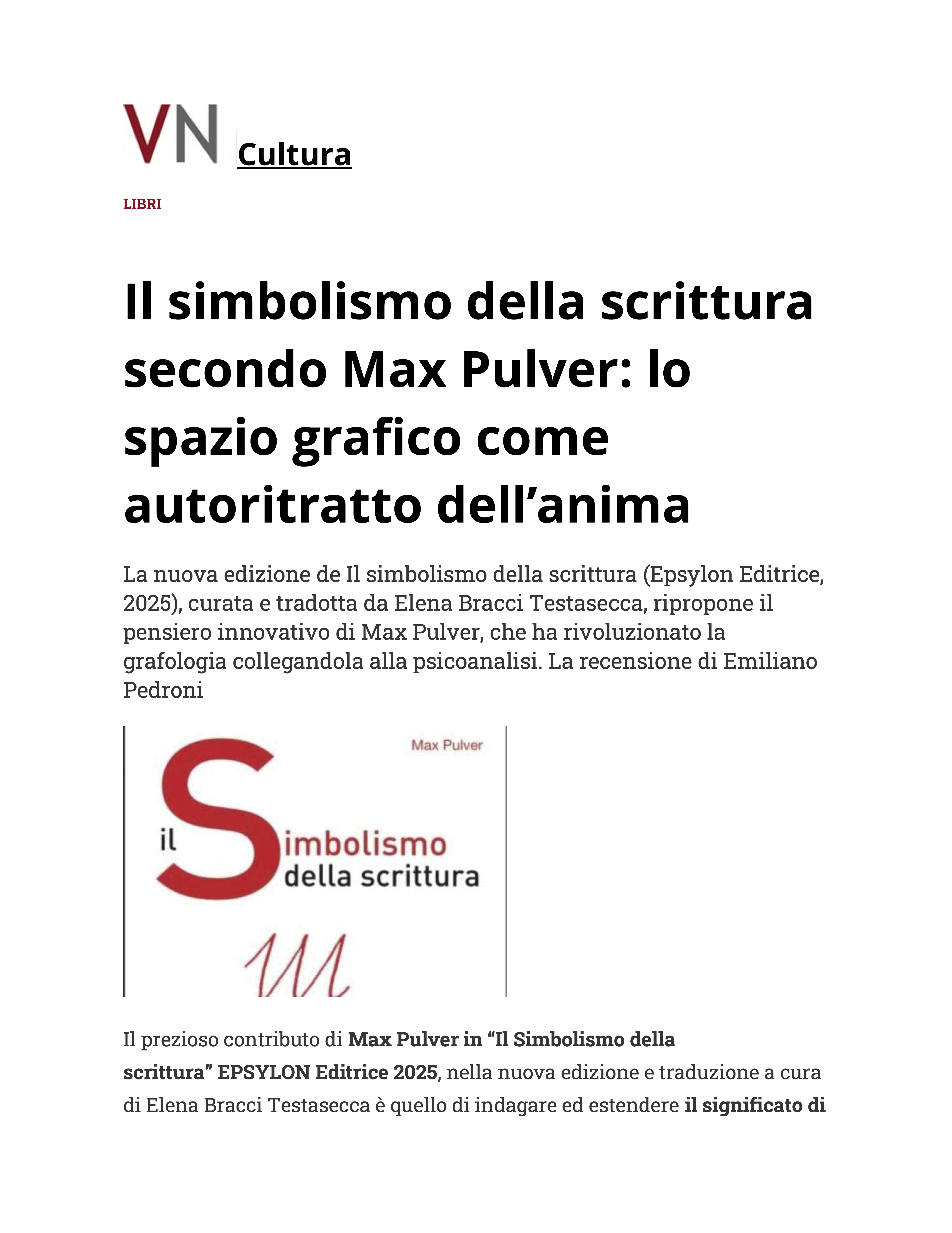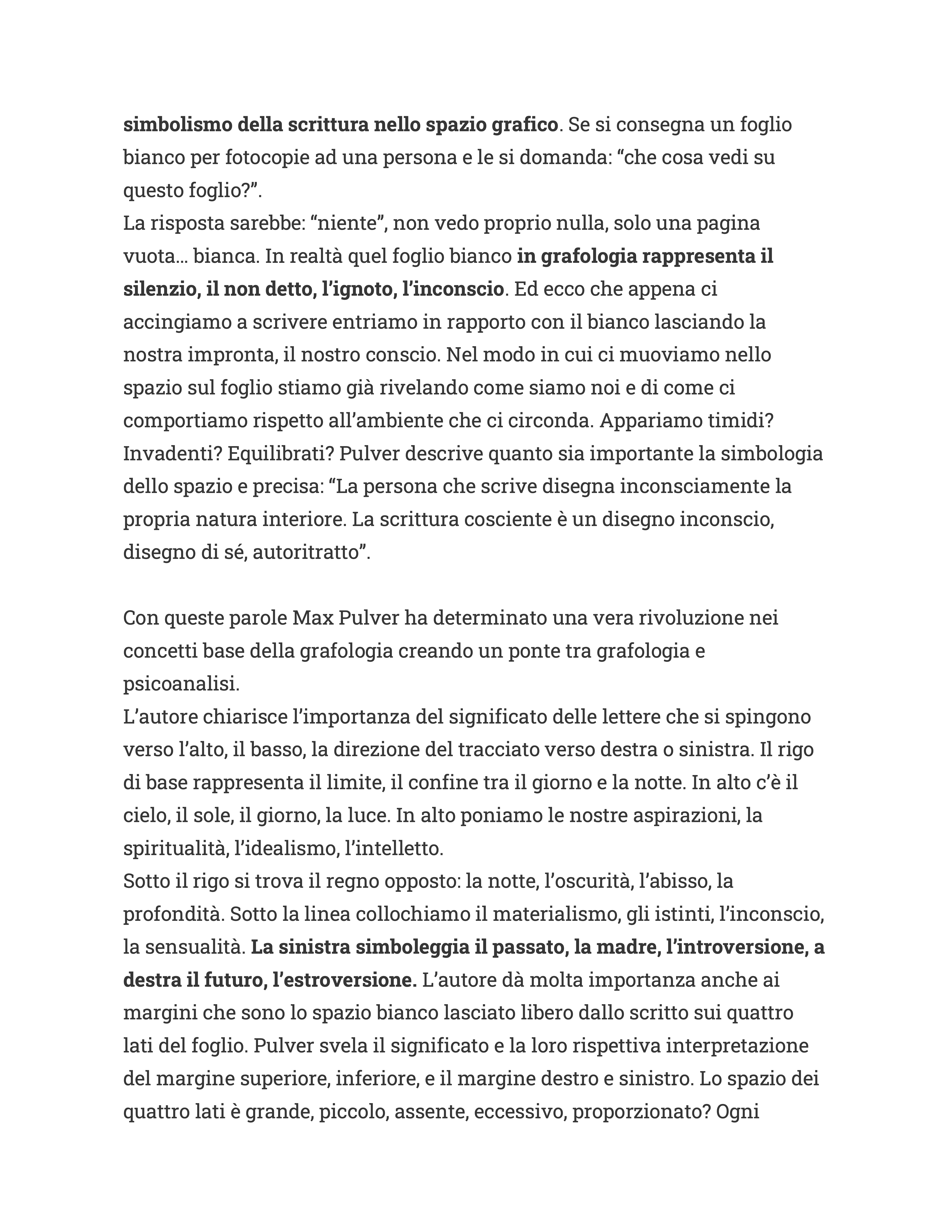 “La persona che scrive disegna inconsciamente la propria natura interiore. La scrittura cosciente è un disegno inconscio, disegno di sé, autoritratto”. Con queste parole Max Pulver ha determinato una vera rivoluzione nei concetti base della grafologia aprendo la porta alla psicoanalisi.