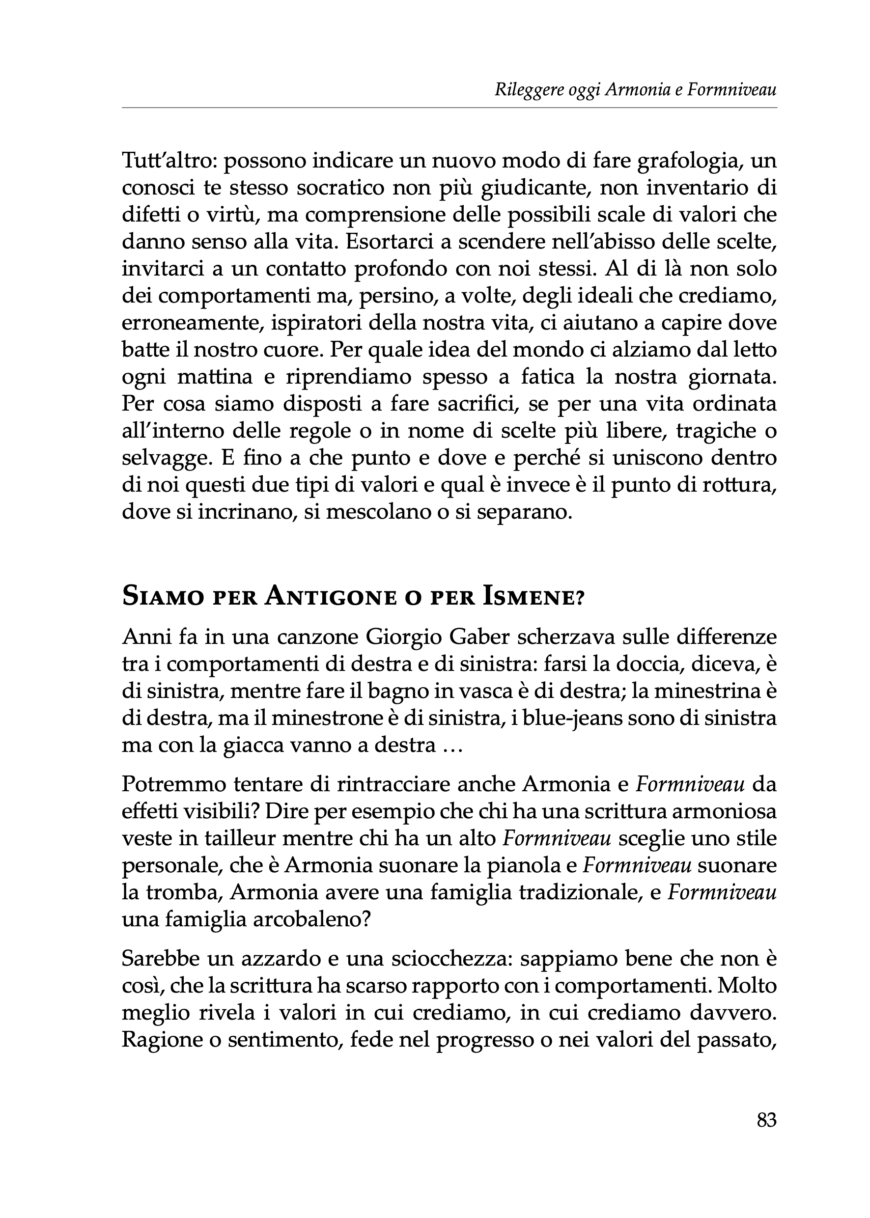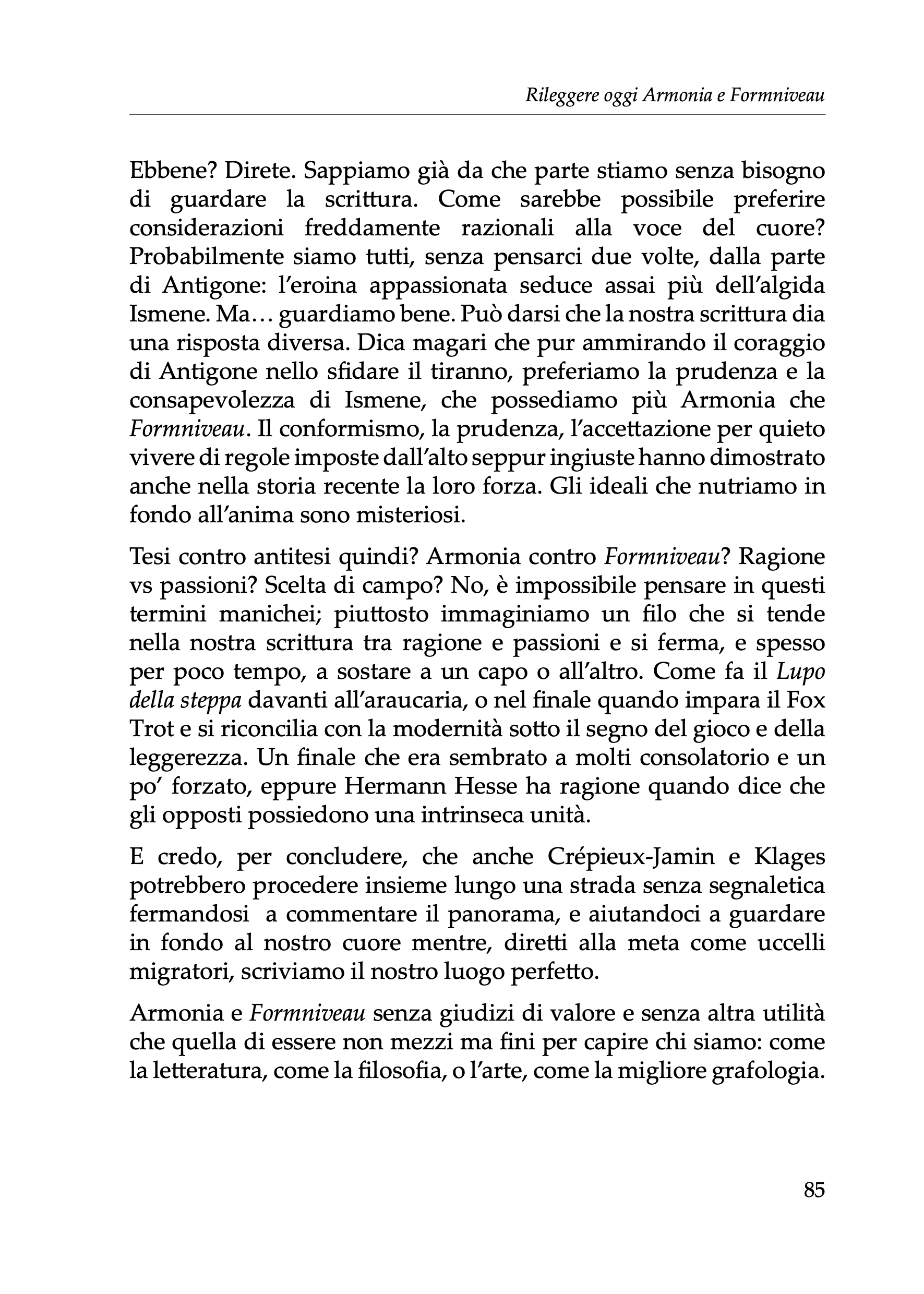 A quale delle due scritture assomiglia la nostra? Siamo più ragionevoli o più appassionati? Più rispettosi delle regole o attratti dalla libertà? Abbiamo una intelligenza intuitiva o razionale? Possediamo la serenità di Apollo o la vitalità di Dioniso? A quale dei due mondi apparteniamo? Dalla risposta dipende il senso che attribuiamo alla vita.
