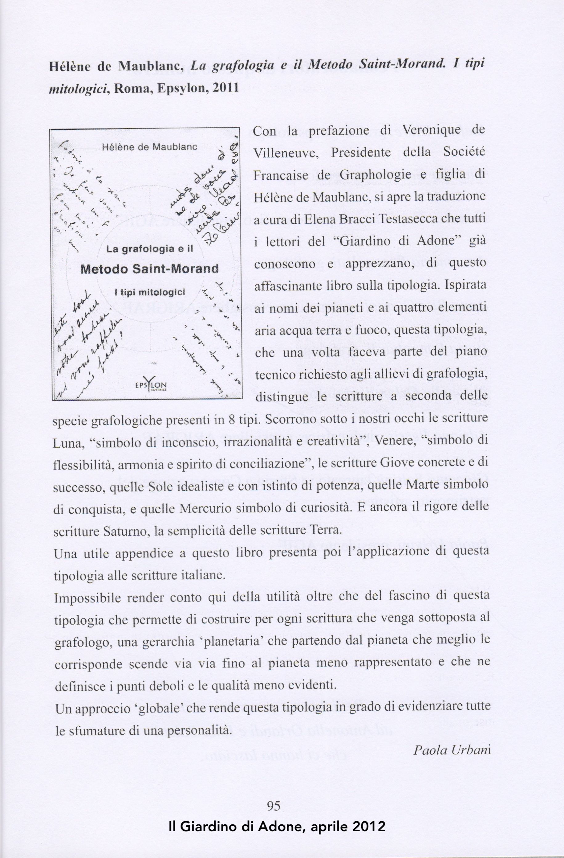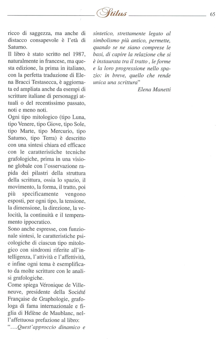 Hélène de Maublanc, laureata in filosofia e psicologia, grafologa diplomata presso la Societé Française de Graphologie, oltre a La grafologia e il metodo Saint-Morand (Epsylon Editrice, 2011) è anche l’autrice insieme a Christian Fest di Graphologie planétaire et tests (Elsevier Masson, 1999) e di Graphologie et pulsions szondiennes (Tredaniel, 1990).