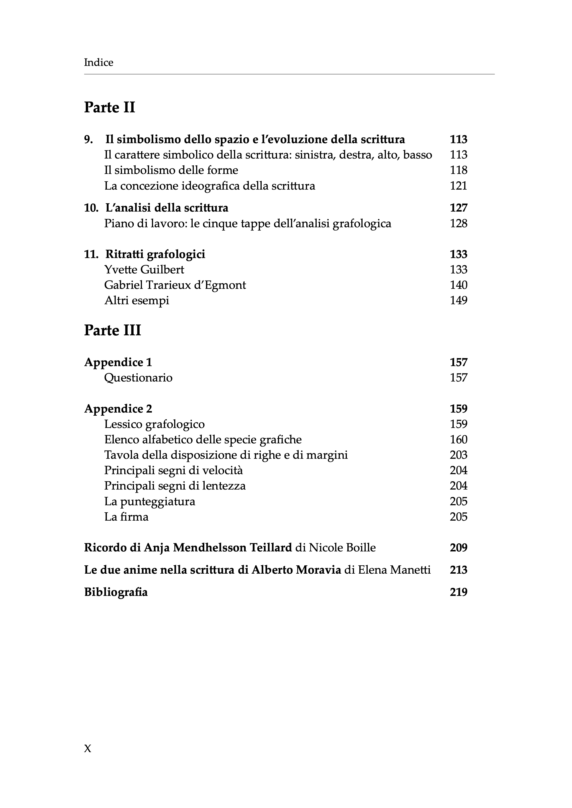 Questa nuova edizione del libro è arricchita dal contributo di due importanti figure della grafologia: Nicole Boille, che è stata allieva dell’autrice e ha gentilmente concesso la riproduzione del testo Ricordo di Anja Teillard pubblicato in Oltre il bianco (2011); e Elena Manetti che in questo inedito, Le due anime nella scrittura di Alberto Moravia, analizza la grafia dello scrittore in epoche diverse della vita alla luce delle tipologie junghiane.