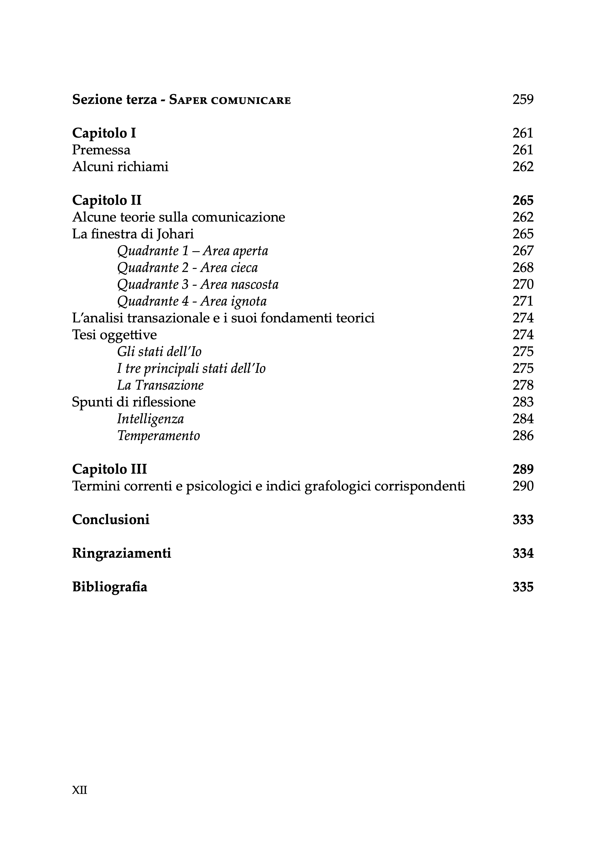 Il libro si conclude con un collegamento tra termini psicologici e indici grafici, di indubbia utilità operativa.