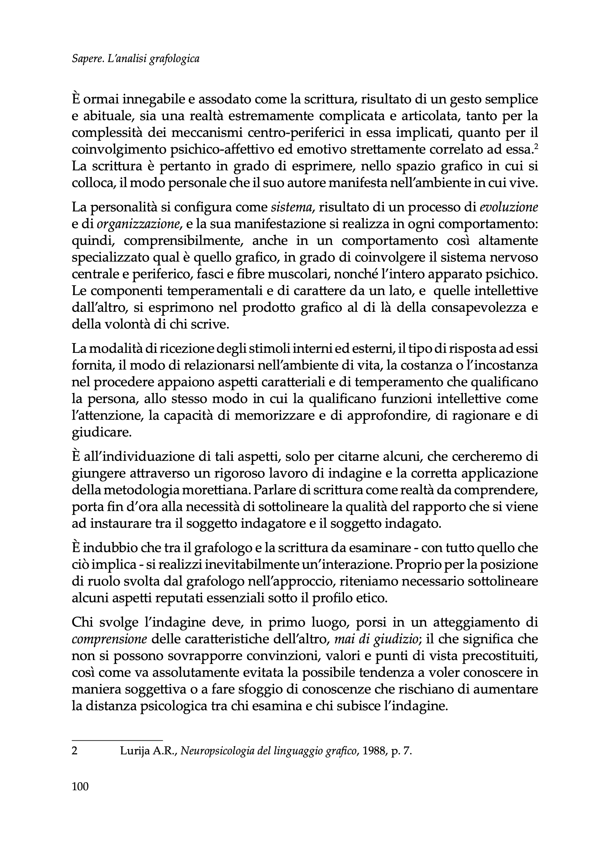 Questo testo è stato completato nel 2025 con Tecnica dell'analisi grafologica, volume 2. Accompagnare con la parola. Grafologia e comunicazione.