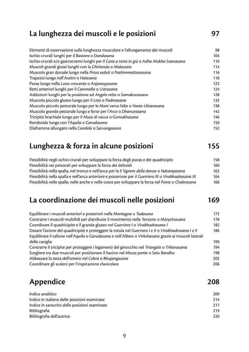Attraverso una serie di schede/esempi che esaminano ogni volta una posizione yoga in cui lavorano uno o più muscoli, il libro insegna come distinguere e comprendere i loro vari ruoli. Una guida per sperimentare lo yoga in modo più consapevole, aiutando il lettore a capire e quindi a praticare meglio.