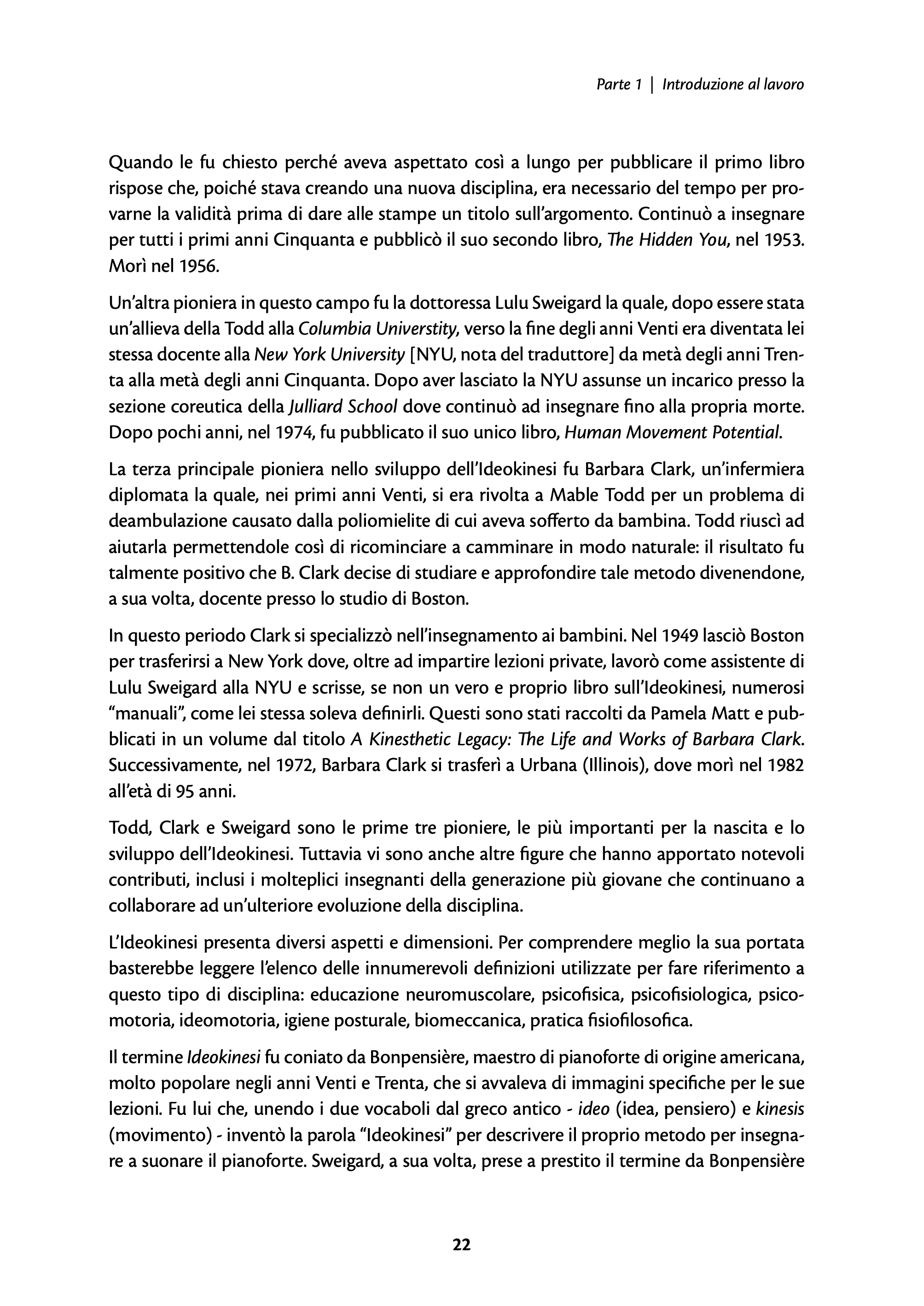 “Con Ideokinesi, la collana Gesto Motorio di Epsylon Editrice si arricchisce di un nuovo testo fondamentale nel campo della somatica. Oltre a introdurre a una sofisticata pratica corporea, il libro fa ben comprendere al pubblico italiano la relazione tra tradizione e innovazione, tra gli insegnamenti di grandi maestri come André Bernard e le nuove ricerche sulla consapevolezza del movimento che da quegli insegnamenti prendono ispirazione. È il caso di Ursula Stricker, attenta e appassionata curatrice di questa edizione italiana di Ideokinesis. Dopo aver studiato per molti anni con André Bernard, l’autrice ha sviluppato Placement, una propria originale pratica che da anni insegna anche in Italia. Cura e amorevolezza fluiscono nel passaggio da maestro a maestro, in un continuum dove ciascuno di noi è al tempo stesso maestro e allievo” (Gloria Desideri, Body-Mind Centering® Teacher, direttrice dei programmi BMC® in Italia).