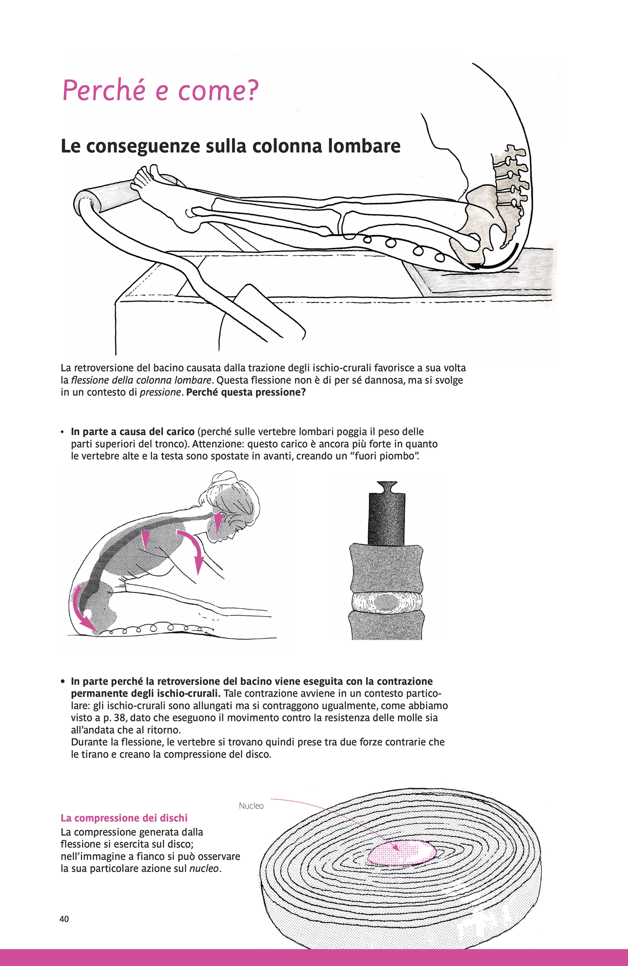 Di volta in volta la pratica viene collegata alla teoria, sia nell’affrontare un’articolazione come la caviglia, o una regione del corpo come il perineo, o strutture come i legamenti della colonna vertebrale.