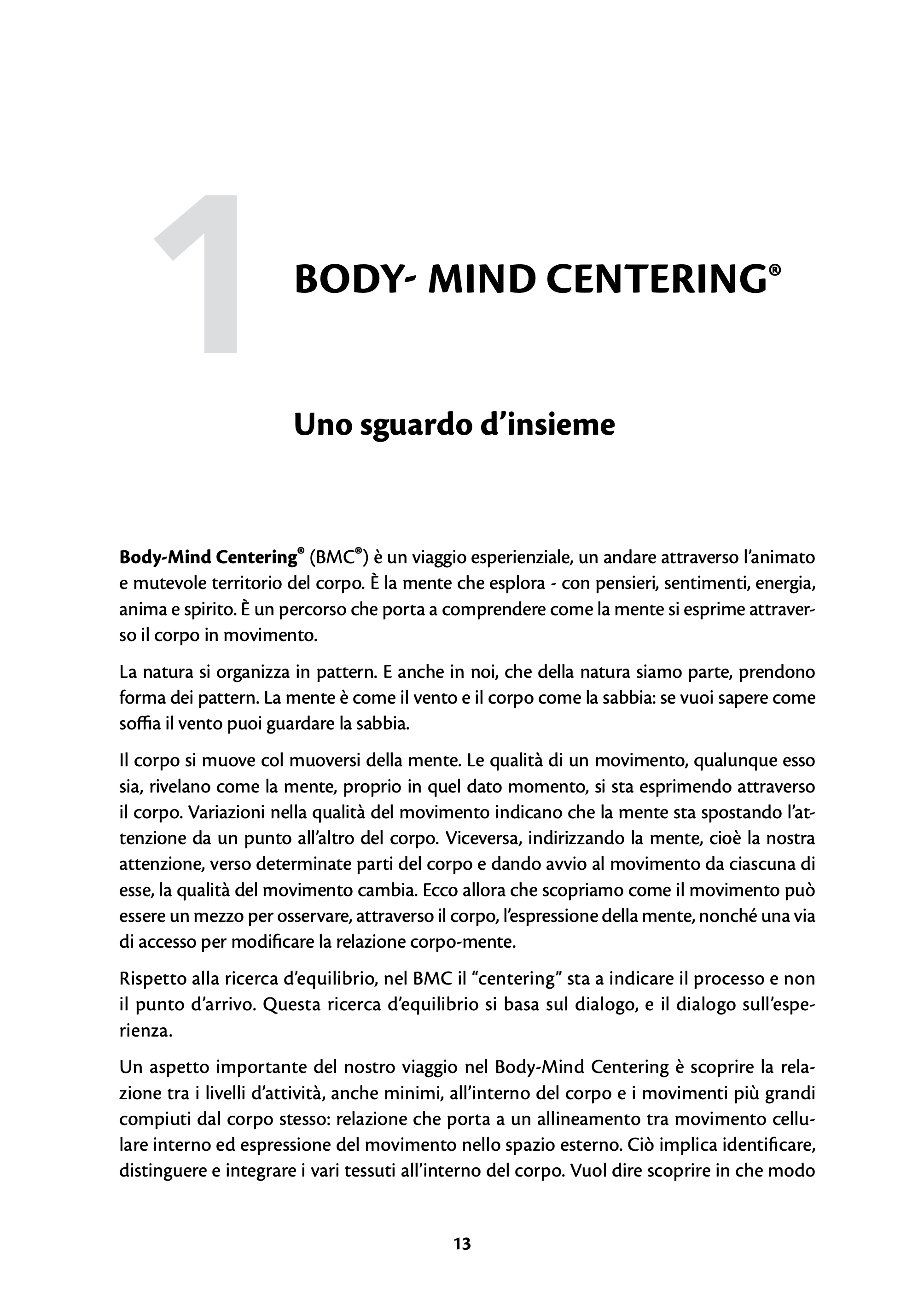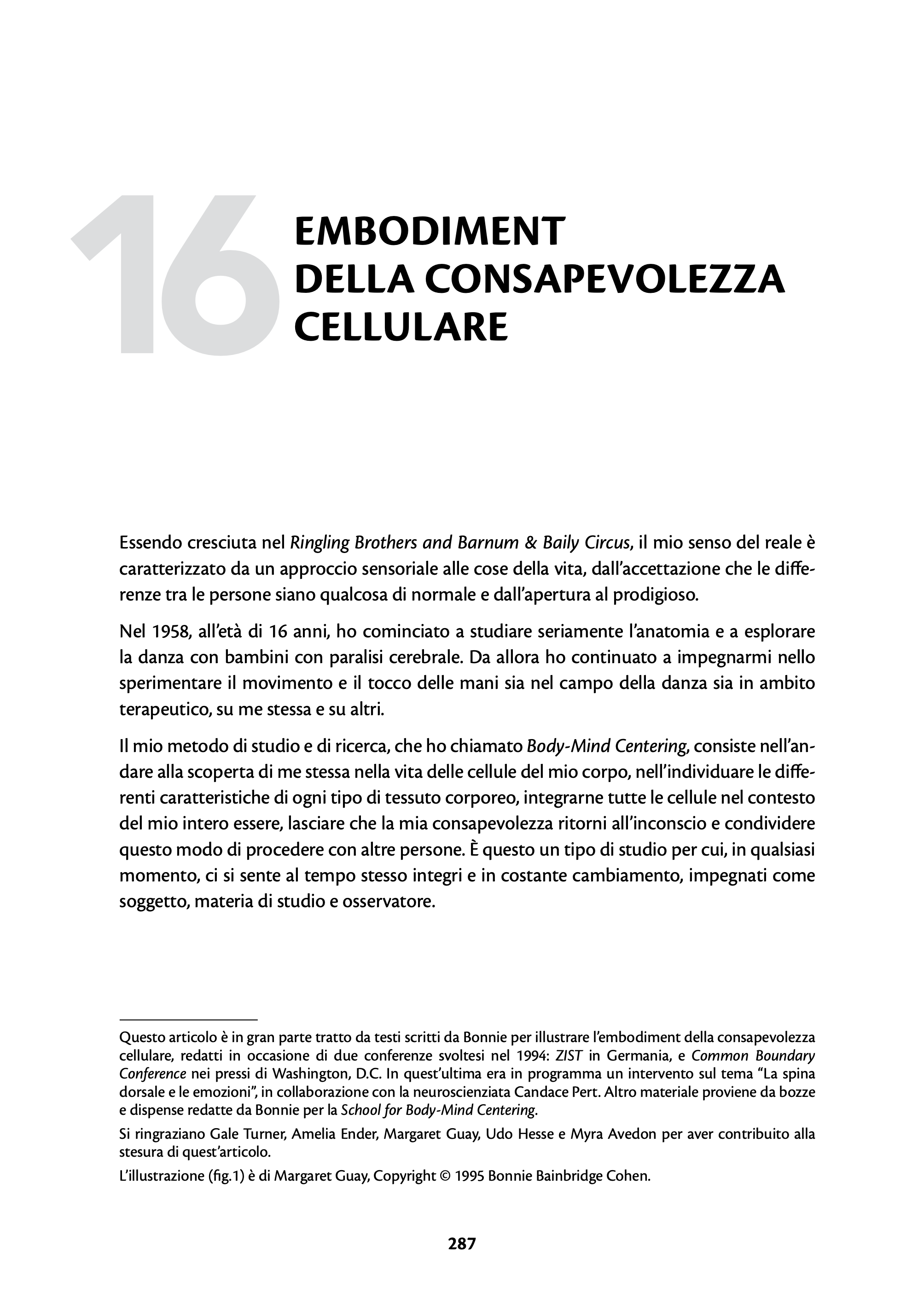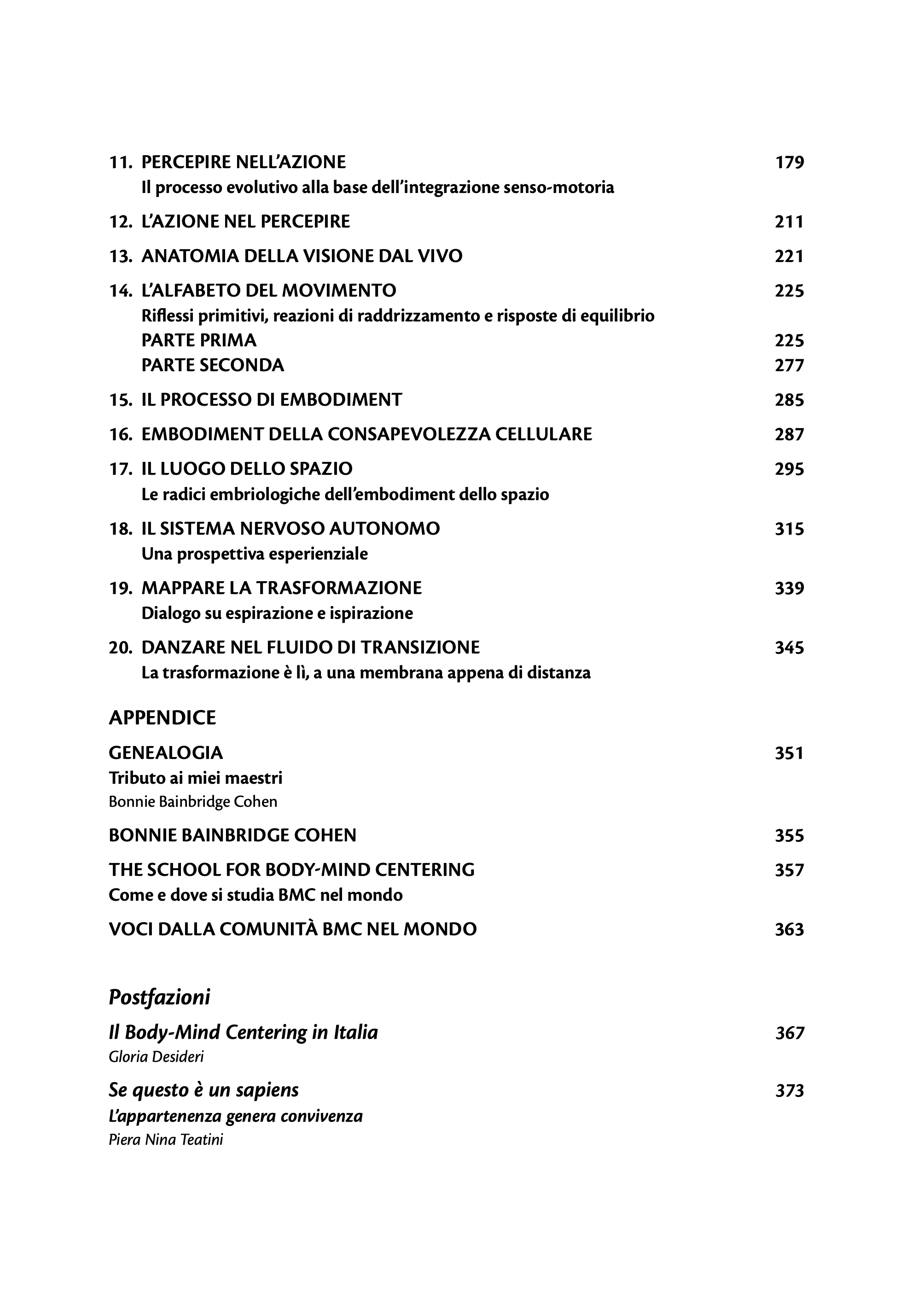 Una ricca e variegata raccolta di materiali (saggi, interviste, immagini, esercizi e pratiche somatiche) prodotti in più di quarant’anni di attività dell’autrice, disegna una panoramica esaustiva del Body-Mind Centering®, l’approccio al processo di embodiment e all’analisi del movimento in chiave evolutiva creato da Bonnie Bainbridge Cohen.