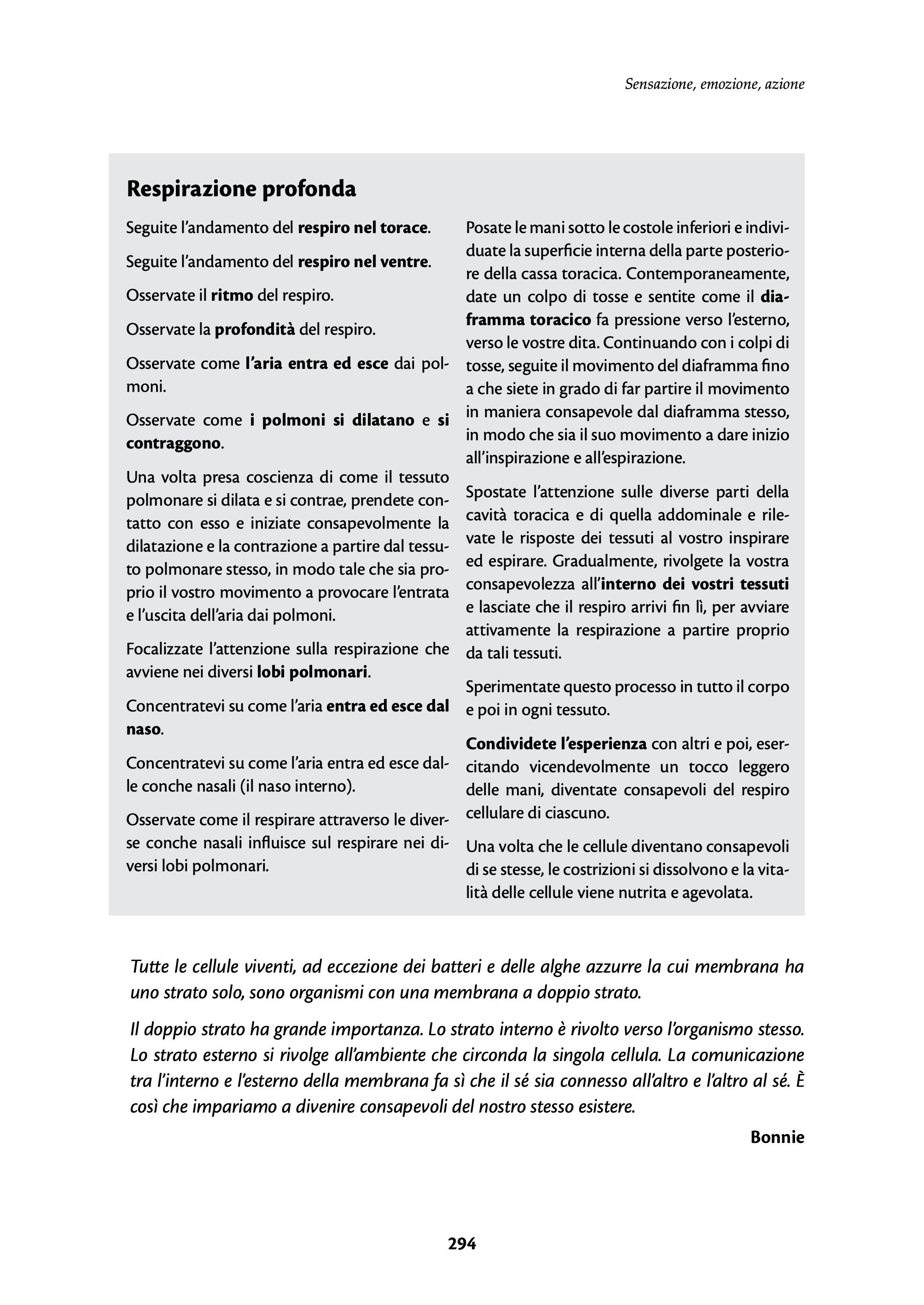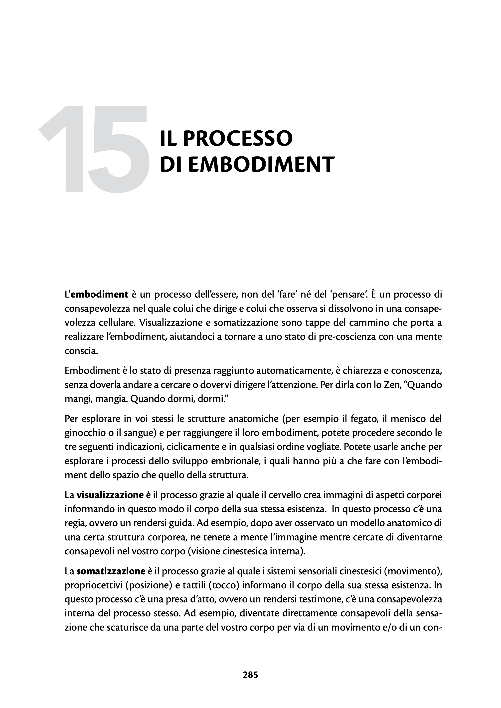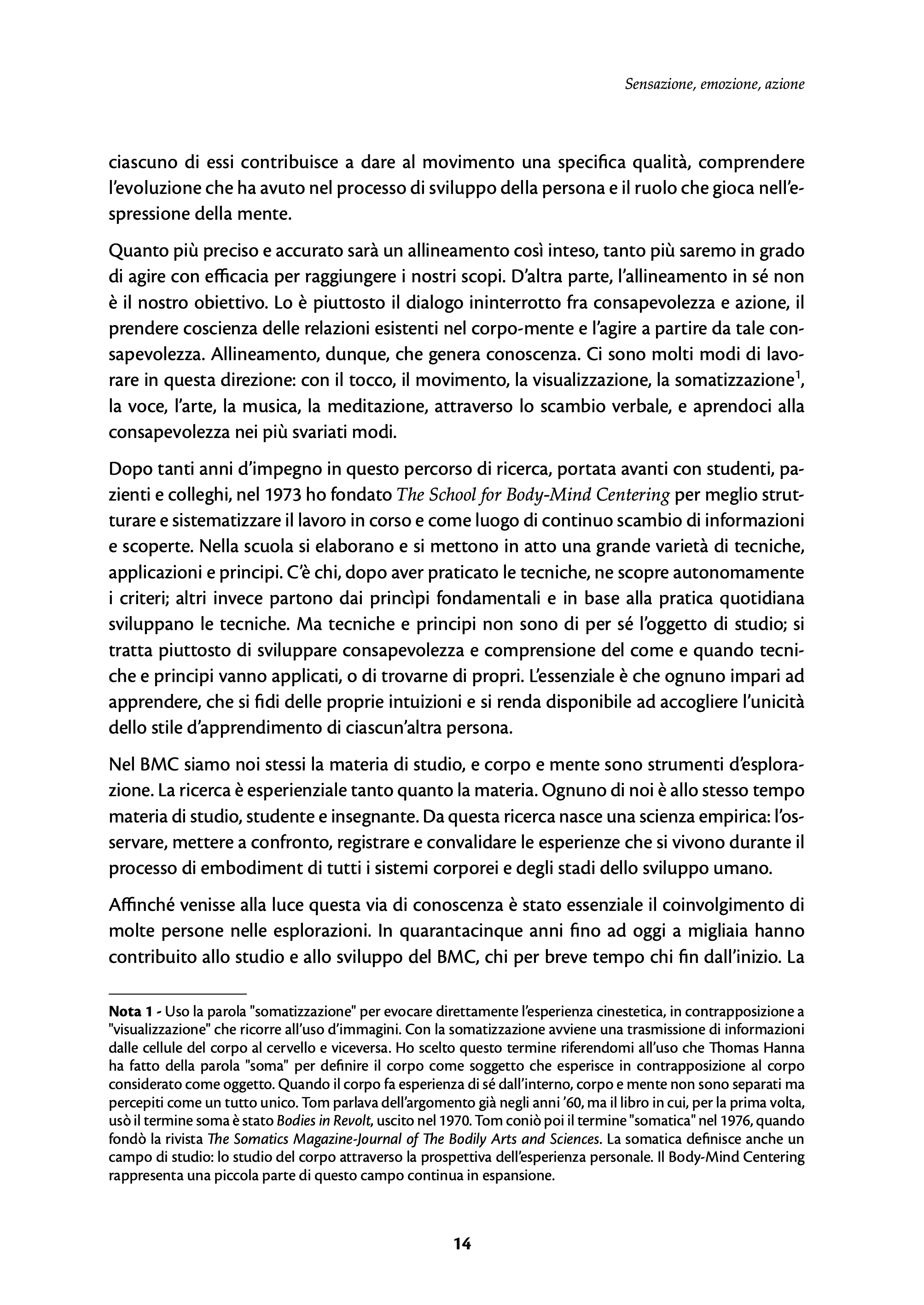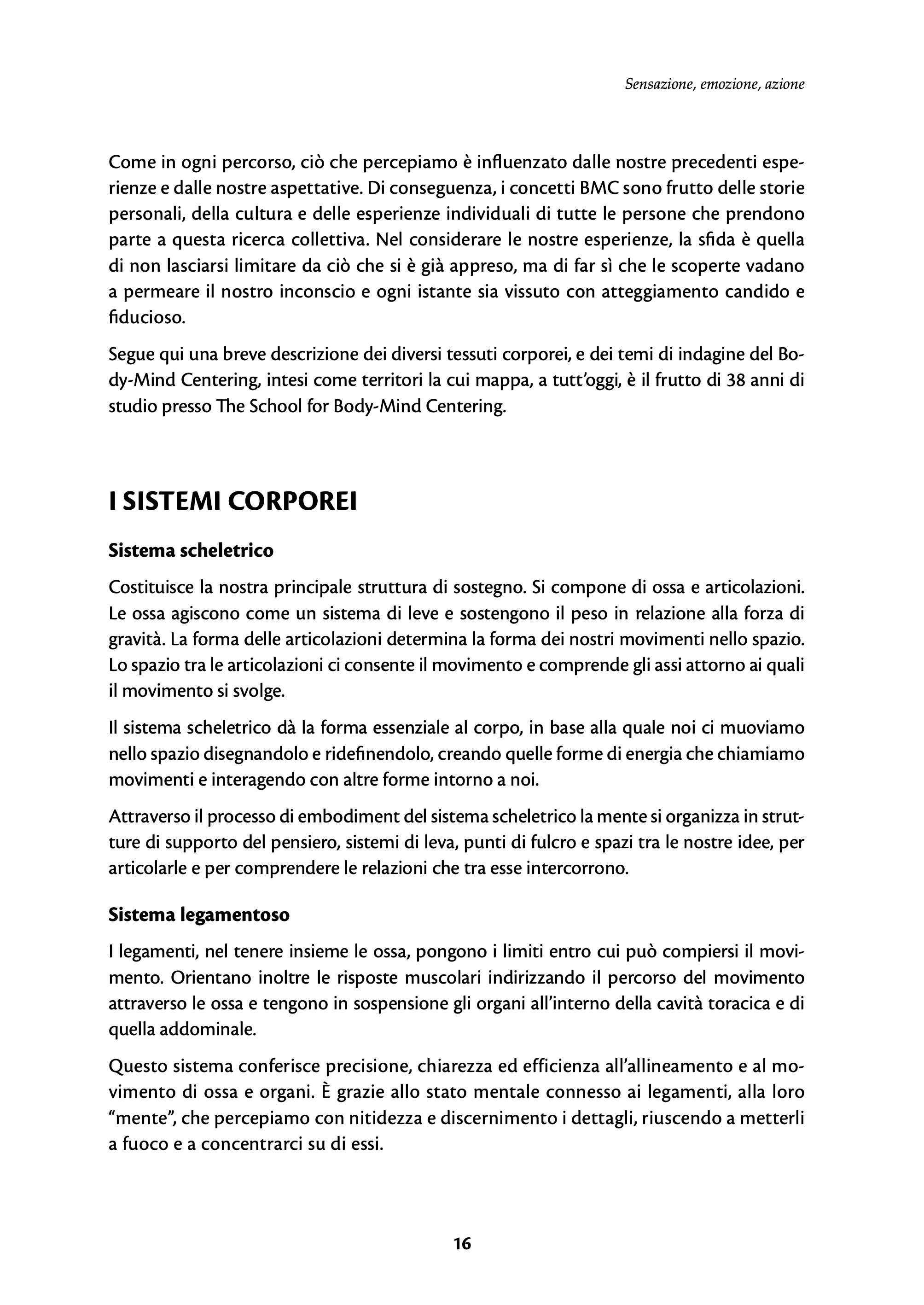 Una ricca e variegata raccolta di materiali (saggi, interviste, immagini, esercizi e pratiche somatiche) prodotti in più di quarant’anni di attività dell’autrice, disegna una panoramica esaustiva del Body-Mind Centering®, l’approccio al processo di embodiment e all’analisi del movimento in chiave evolutiva creato da Bonnie Bainbridge Cohen.