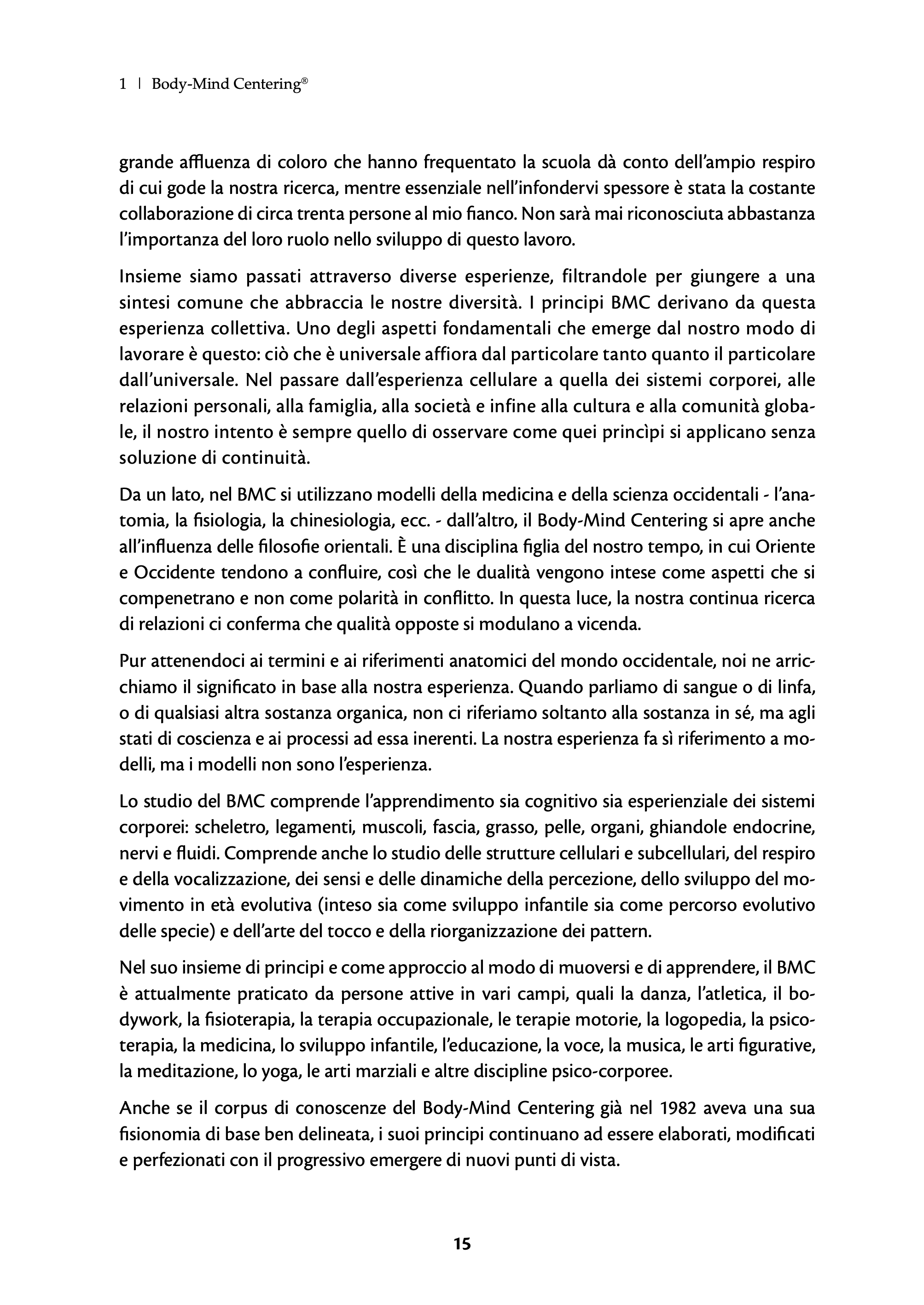 Rifacendosi a conoscenze scientifiche delle culture sia occidentali che orientali, il BMC è uno studio esperienziale che approfondisce i principali sistemi corporei e i modelli evolutivi alla base dell’organizzazione del movimento negli esseri umani.