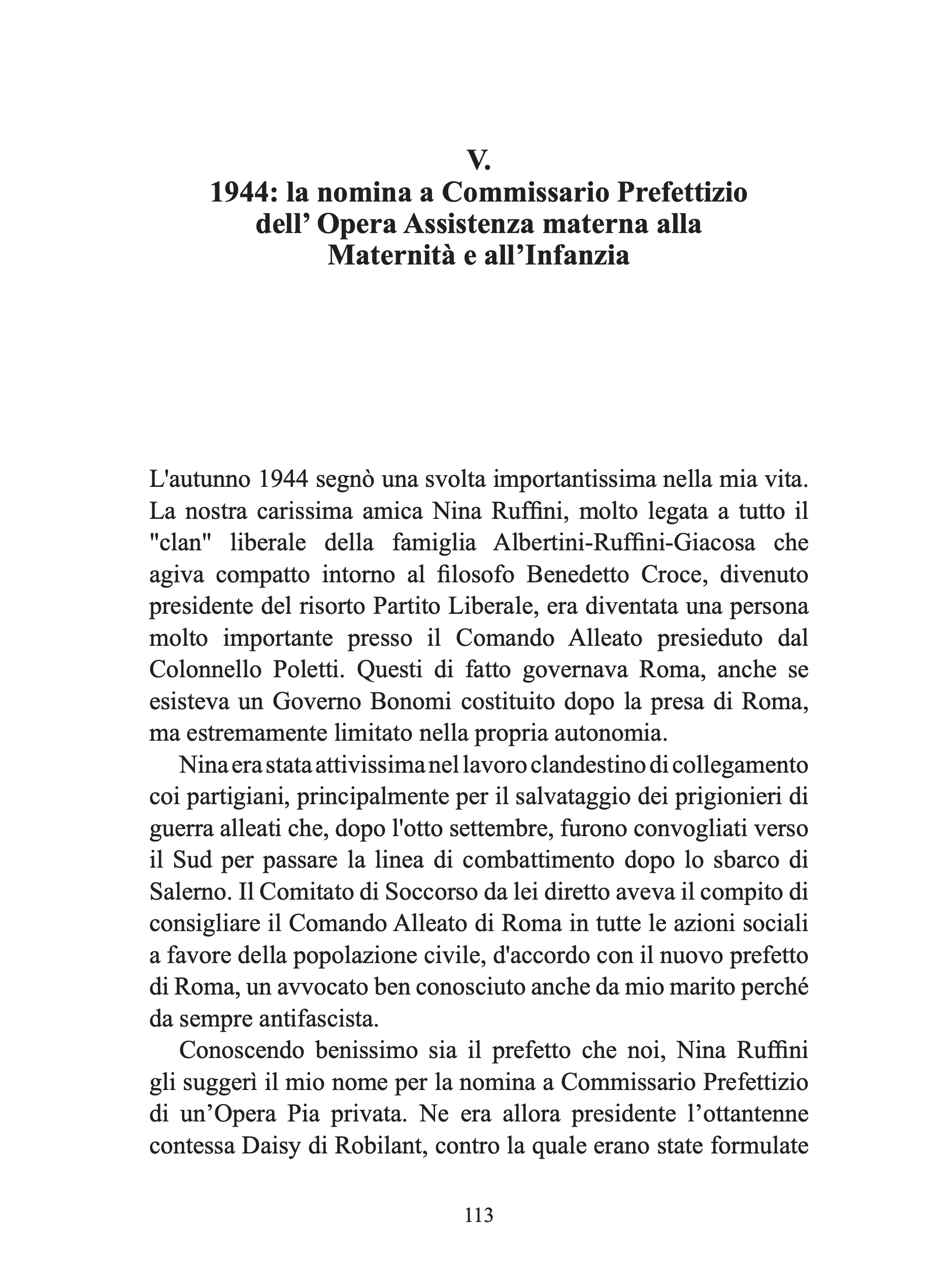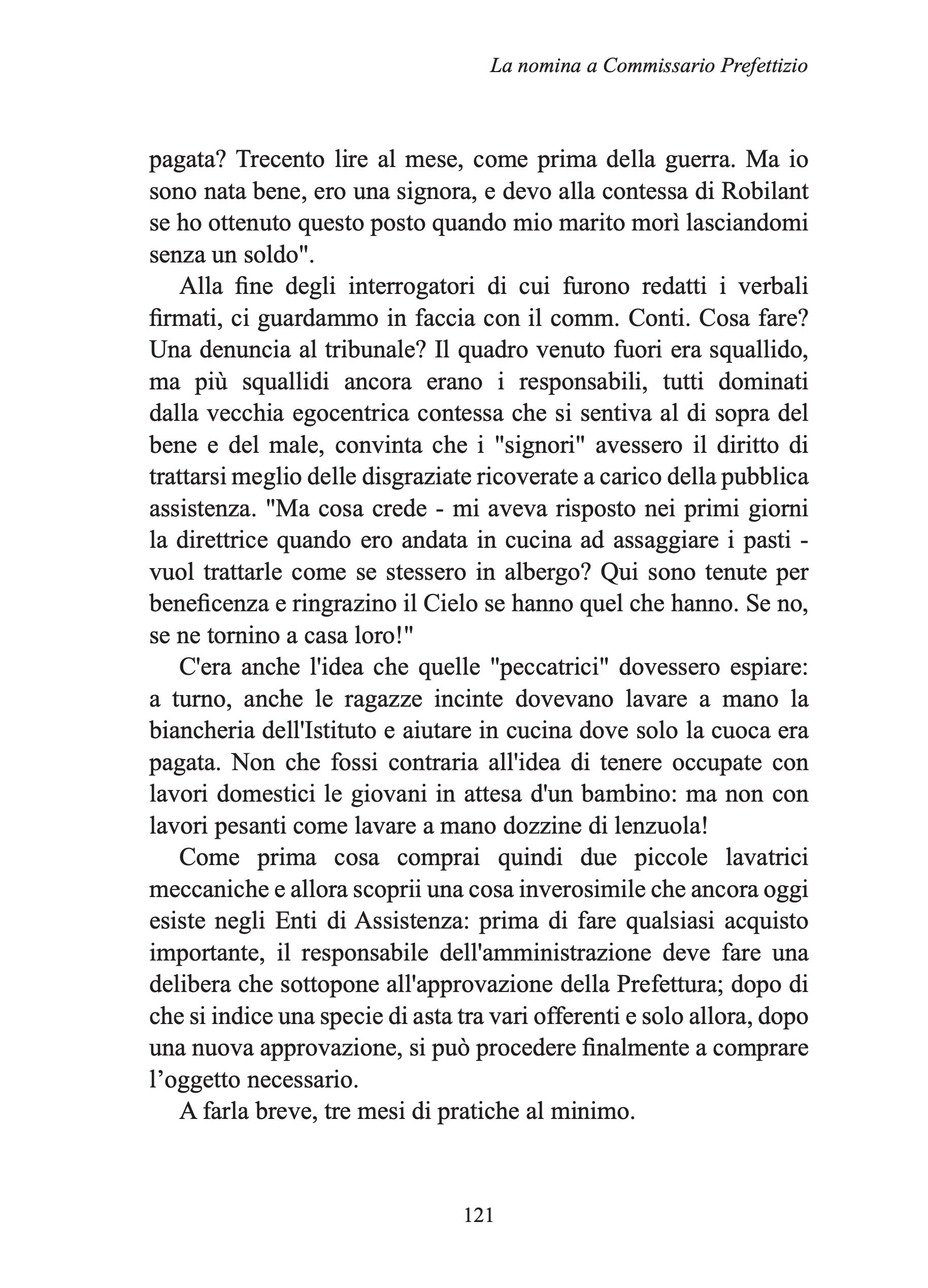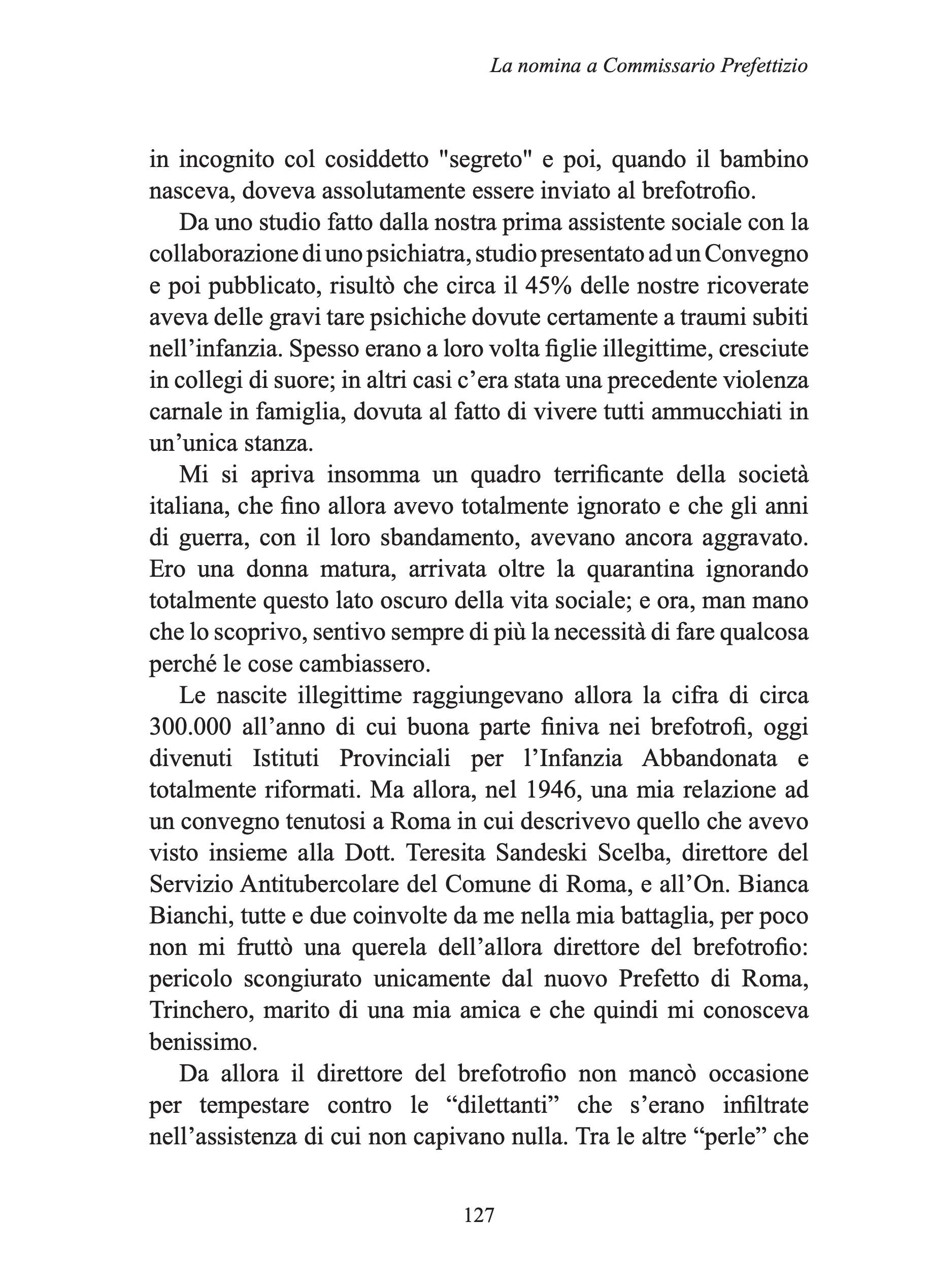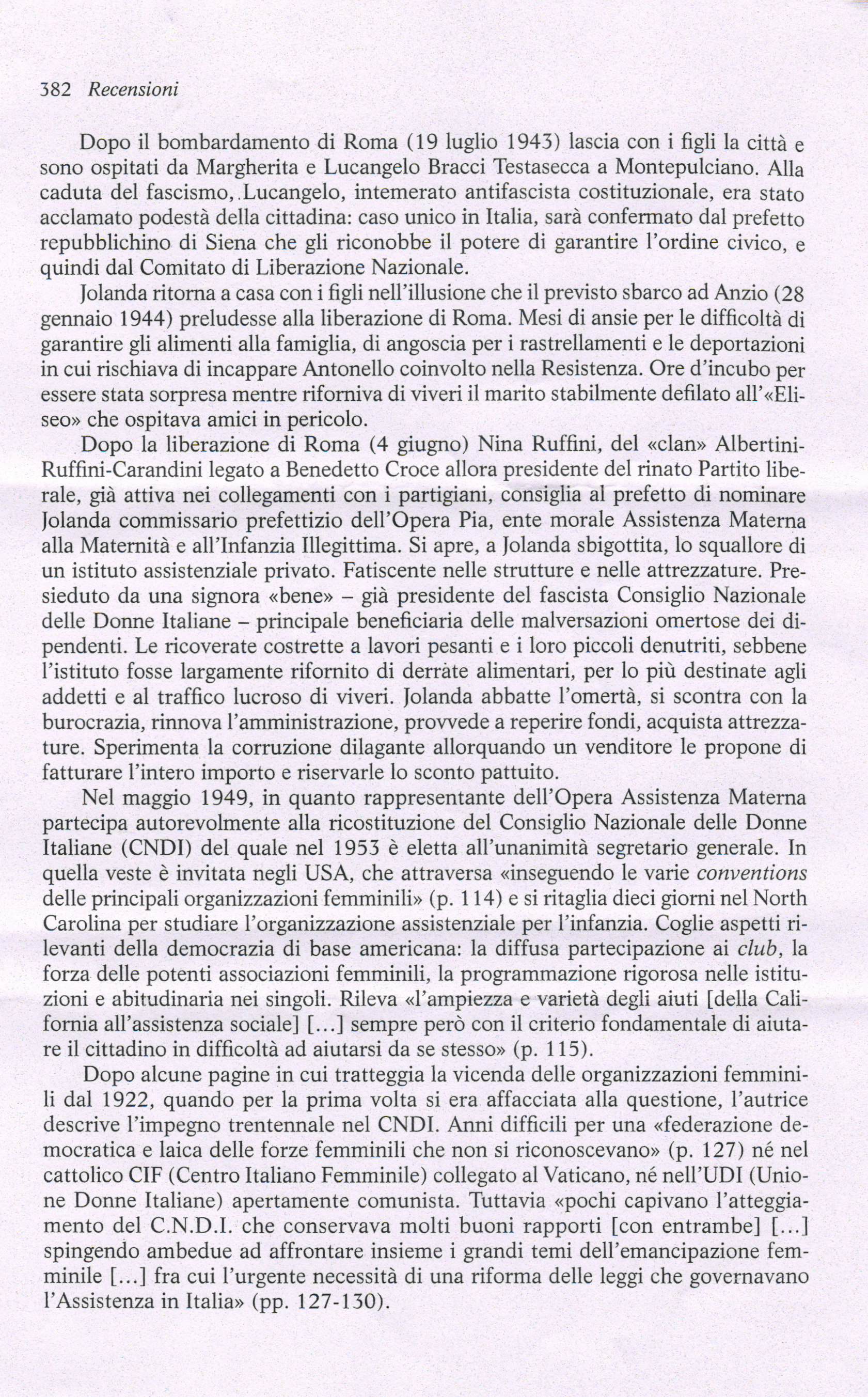 Nell’immediato dopoguerra le sue doti organizzative vengono riconosciute: già nel 1944, nell’Italia liberata, le viene affidato l’importante incarico di commissaria prefettizia all’Opera nazionale di assistenza materna. Intensi sono i suoi contatti con gli Alleati e fruttuosa la possibilità di conoscere, durante un viaggio di due mesi in America nel 1955, l’esperienza assistenziale del welfare statunitense e britannico. Dopo la caduta del governo Parri la posizione di Jolanda perde di centralità istituzionale, ma lei continua ad essere attiva, fino alla fine della sua vita, nelle associazioni femminili e di assistenza alle donne e all’infanzia. Per trent’anni è segretaria del Consiglio Nazionale delle Donne Italiane e ce ne racconta l’appassionante percorso: le divisioni tra le organizzazioni ai tempi della guerra fredda, l’irrompere del femminismo, e le riforme finalmente avviate negli anni Settanta.