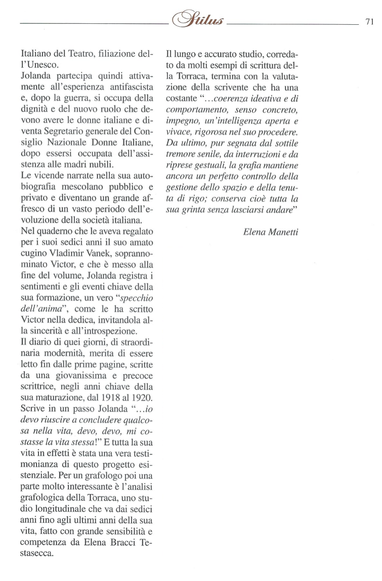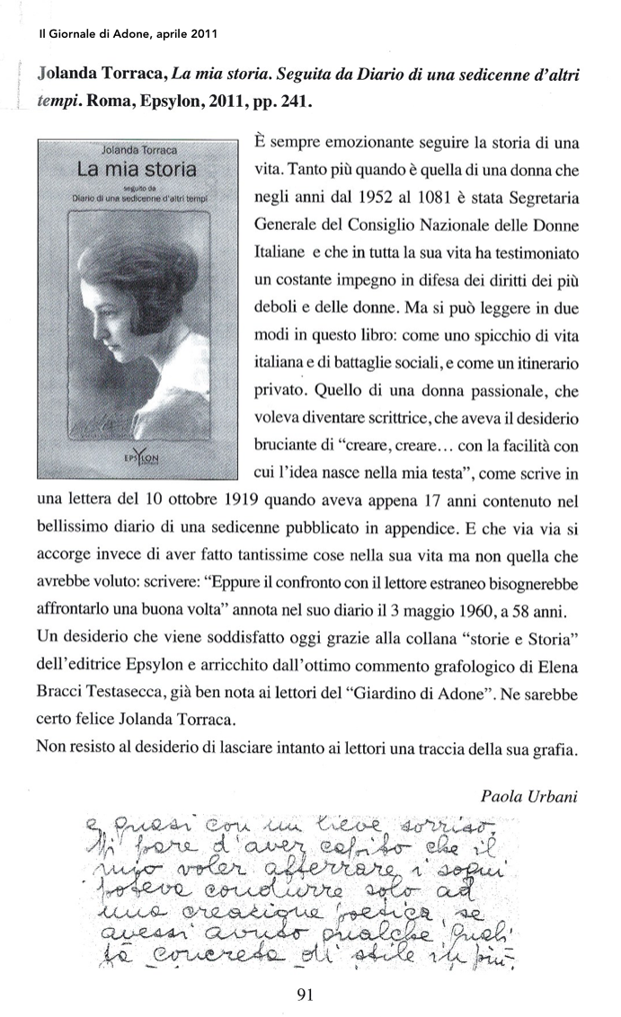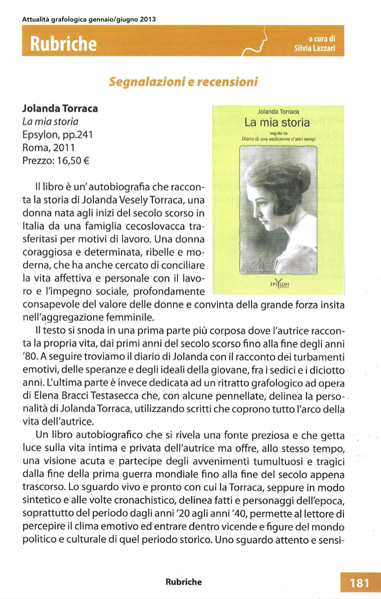 Chiude il libro il ritratto grafologico di Jolanda Torraca a cura di Elena Bracci Testasecca.